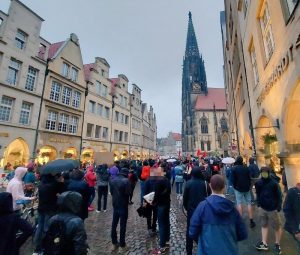 Mahnwachen an den Dienstagen 24.11., 08.12. und 22.12. vor der Zentralen Unterbringungseinrichtung (ZUE) in Münster, Albersloher Weg 450Gerade während der Corona-Pandemie ist erneut deutlich geworden, wer die Menschen sind, die am unmittelbarsten und schwersten von Freiheitseinschränkungen betroffen sind. Es darf nicht vergessen werden, dass einige Menschen in unserer Gesellschaft sich in einem permanenten Zustand der Entrechtung und Freiheitsberaubung befinden. Geflüchtete genießen in Deutschland nicht einmal einen Bruchteil der Rechte und Freiheiten, die die sie umgebende Mehrheitsgesellschaft für sich reklamieren kann.