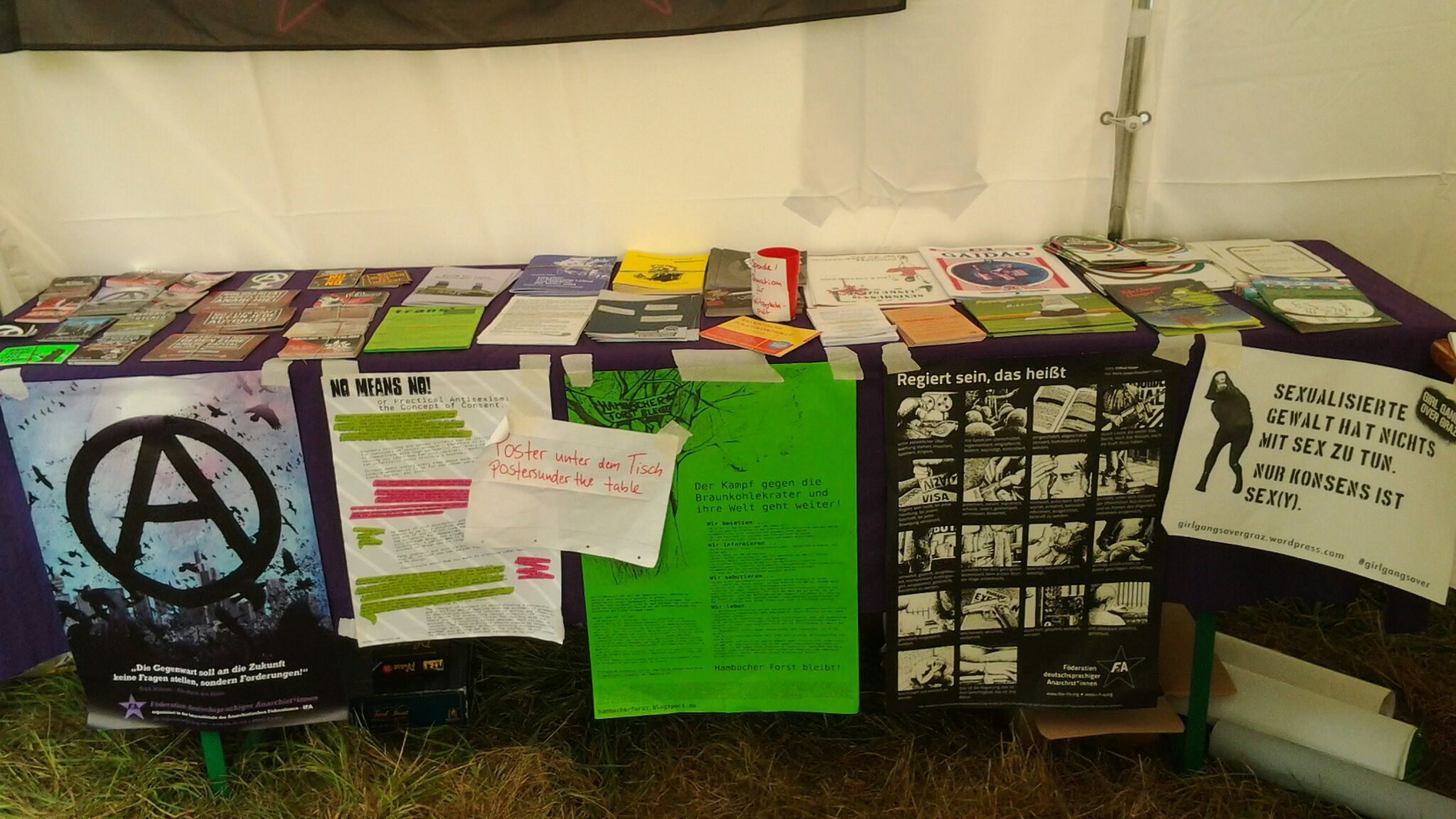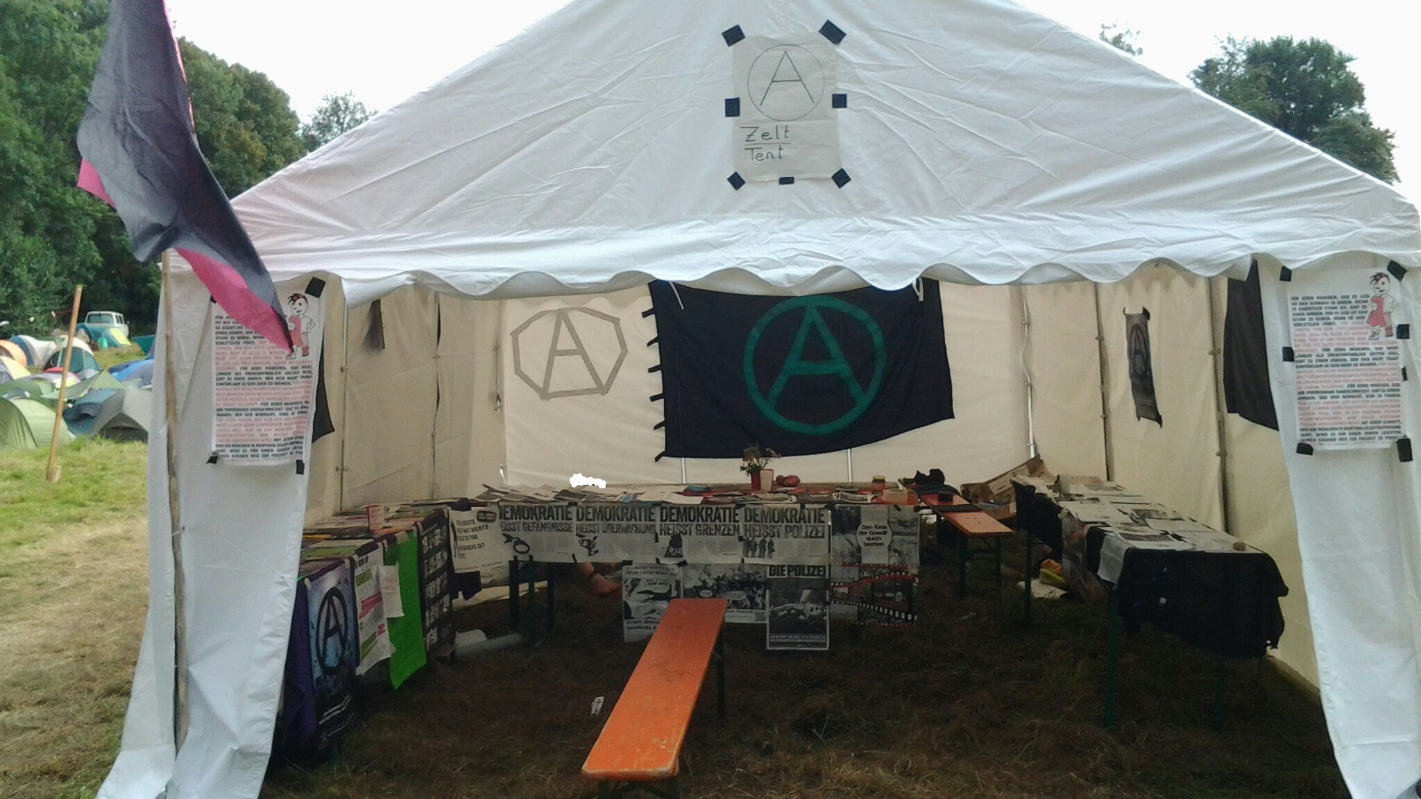 Auch auf dem „Open Air“ waren wir als einzige anarchistische Gruppe vertreten und haben daher wieder gemerkt, wie wichtig es ist Infostände als Teil der anarchistischen Praxis zu sehen. Wo sonst kommt mensch (vielleicht) Vorurteilsfrei über Anarchismus ins Gespräch und kann „Überzeugungsarbeit“ leisten?
