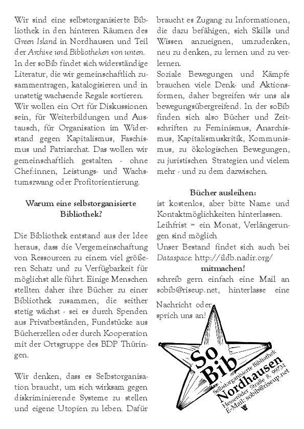 Wir stellen unsere Räumlichkeiten u.a. der selbstorganisierten Bibliothek Nordhausen zur Verfügung.
