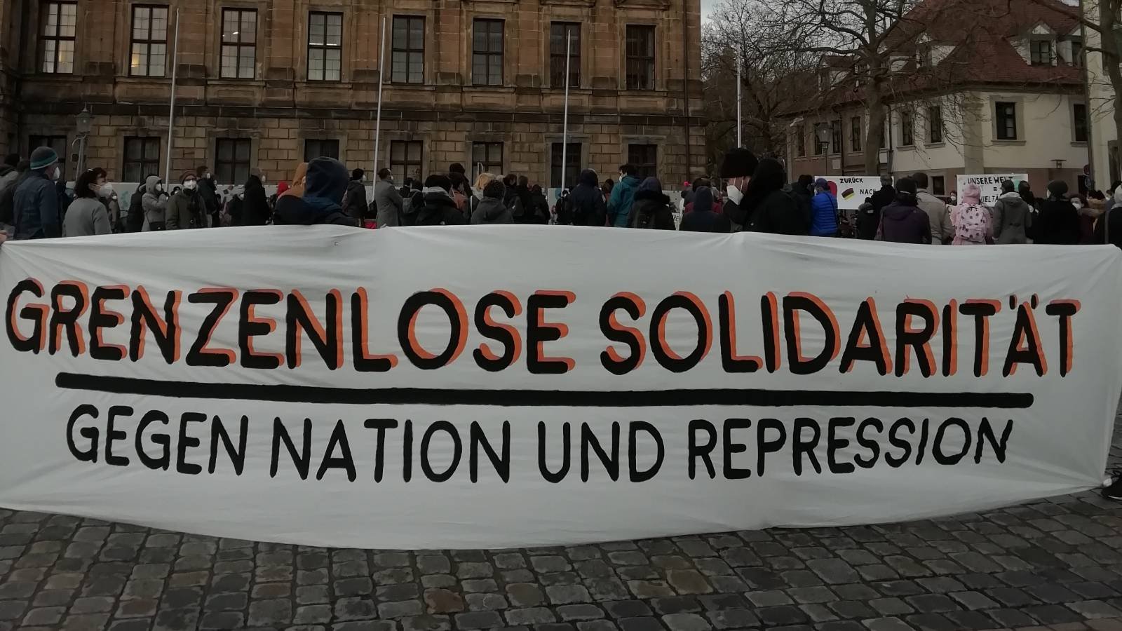 Wir schließen uns den Forderungen auf der Kundgebung an: die Familie muss schnellstmöglich zurück in ihre Heimat – nach Erlangen. Wir gehen in unseren Forderungen aber weiter: Abschiebungen sind unmenschlich und stützen die rassistische Politik Deutschlands und der Festung Europa. Abschiebungen verletzen die Betroffenen in ihren grundlegenden Rechten und ihrer Menschenwürde. Deswegen sind wir gegen jede Abschiebung und auch gegen jede Politik, die versucht Abschiebungen „menschlicher“ zu machen und Menschen in „gute Geflüchtete“ (die bleiben dürfen) und „böse Geflüchtete“ (die ruhig abgeschoben werden können) einzuteilen.