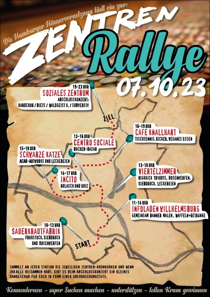 Aus einem solidarischen Zusammenschluss, um Spenden zusammen zu sammeln, um die finanziellen Engpässe der Corona-Pandemie zu überwinden, ist vor 2 Jahren eine Vernetzung von mehr als einem Dutzend linker Zentren in Hamburg entstanden. Wie auch die letzten zwei Jahre wird es wieder eine Rallye geben, in der Ihr diese besuchen und kennenlernen könnt.