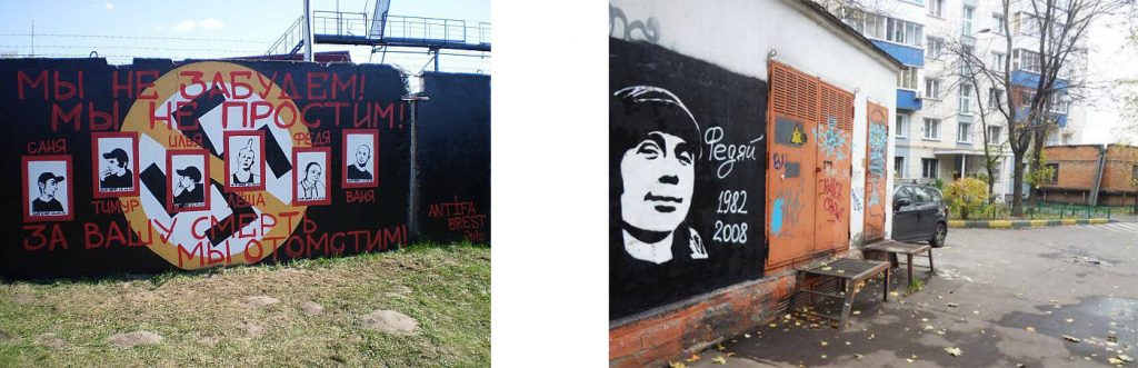 Um exemplo de briga ao estilo hooligan. Em 2010, Arsenal Kiev, conhecidos por seus torcedores antifascistas, jogou contra o Karpaty Lviv, que é conhecida por sua torcida fascista. Muitos antifascistas da Rússia saíram em apoio ao Arsenal. Os torcefores do Arsenal foram capazes de defender seu território, mesmo tendo seus númerdos superados por mais de 2 pra 1.