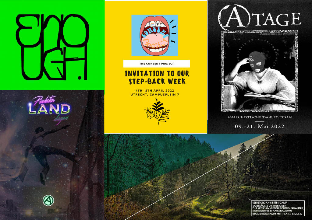 We had the opportunity to contribute with our workshops to several amazing events this year, such as at the FLINTA skillshare around the 10th anniversary of the Hambach forest occupation, the occupied village of Lützerath, at the Anarchism Days Potsdam, at the Anarchist Gathering Pinksterlanddagen (NL), the AMS Camp in the Black Forest, the Climate Camp Augsburg, Aktion Seebrücke, the Action Days enough in Zurich, the Akademie der Radikal Sorgetragenden in Frankfurt a.M. and the (still ongoing) Campaign Against Patriarchal Violence in Self-Organized Spaces in Berlin.