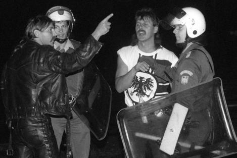 Deshalb versammelten sich patriotische Deutsche und Neonazis vor dem ZAst, skandierten rassistische Parolen und bewarfen die Flüchtlinge mit Flaschen und Steinen. In den folgenden Stunden eskalierte die Situation immer mehr und davon angestachelt, wuchs der rassistische Volksmob an und intensivierte seinen Angriff. Die Polizei war zum größten Teil nicht gewillt, angemessen einzuschreiten und ließ die Randalierer_innen weitgehend gewähren. Die Angriffe wurden so heftig, dass das ZAst evakuiert werden musste. Das daneben liegende Wohnhaus jedoch, das vorwiegend von vietnamesischen Familien bewohnt wurde, war dem mörderischen Volkszorn schutzlos ausgeliefert. Die deutschen Horden stürmten schließlich das Haus und zündeten es an. Es grenzt an ein Wunder, dass dabei niemand getötet wurde.