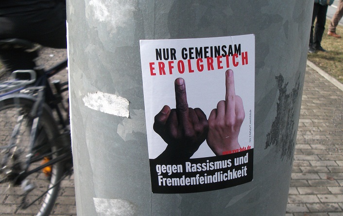 Ein politischer Umschwung steht der rechtsradikalen Partei sich bevor. Experten schätzen, dass ein NPD-Verbotsverfahren in etwa drei Jahren beendete sein könnte. Viel Zeit bleibt den Nationalen Zellenteilern also nicht mehr, wenn sie sich weiter „kommunal verankern“ wollen, wie es heißt. Bild: Aufkleber der VVN-BdA, die seit Jahren mit ihrer Kampagne „No NPD“ für Verbot der NPD wirbt. Mehr Infos unter: http://ino.blogsport.de