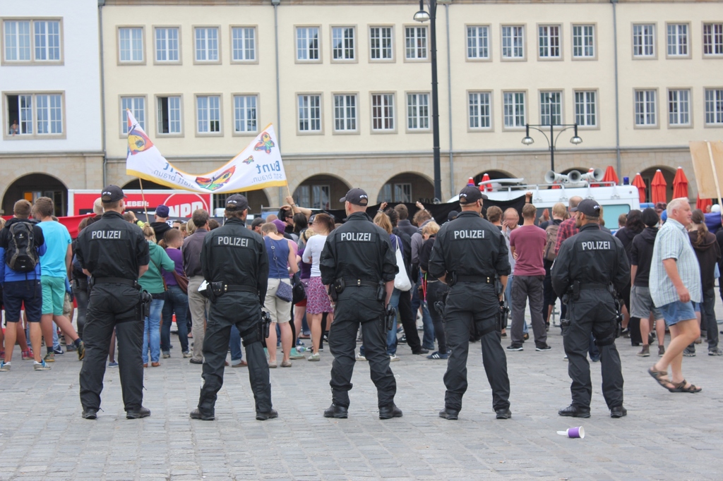 Während die NPD nach zwei Stunden Fähnchen und Rednerpult wieder einpackte und im Polizeikonvoi den Neuen Markt verließ, wurde eine Person festgenommen. Solidarische Genoss_innen wurden von Bullen attackiert. Über weitere Festnahmen und Verletzte ist bislang nichts bekannt.