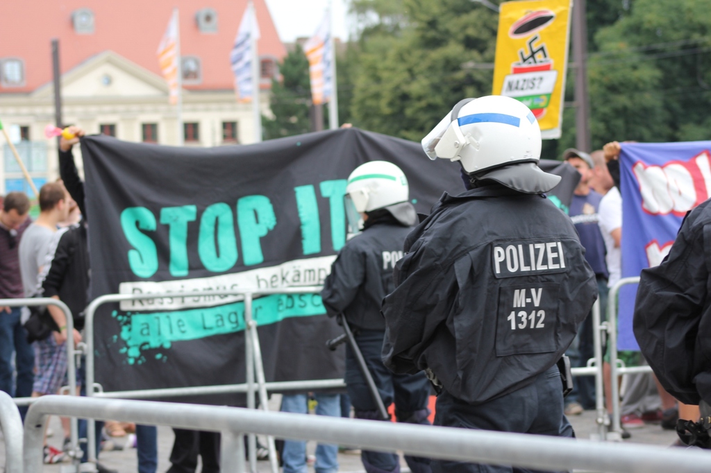 Auch heute hat der rassistische Törn nach Rostock also in aller erster Linie Antifaschist_innen erreicht, die den Neonazis Ablehnung entgegenbrachten. Ein riesiger Polizeieinsatz sicherte das „Flaggschiff“ vor dem erneuten Untergang und zeigt, dass die Faschisten in der Rostocker City nur unter massivem Polizeischutz überhaupt öffentlich auftreten können.