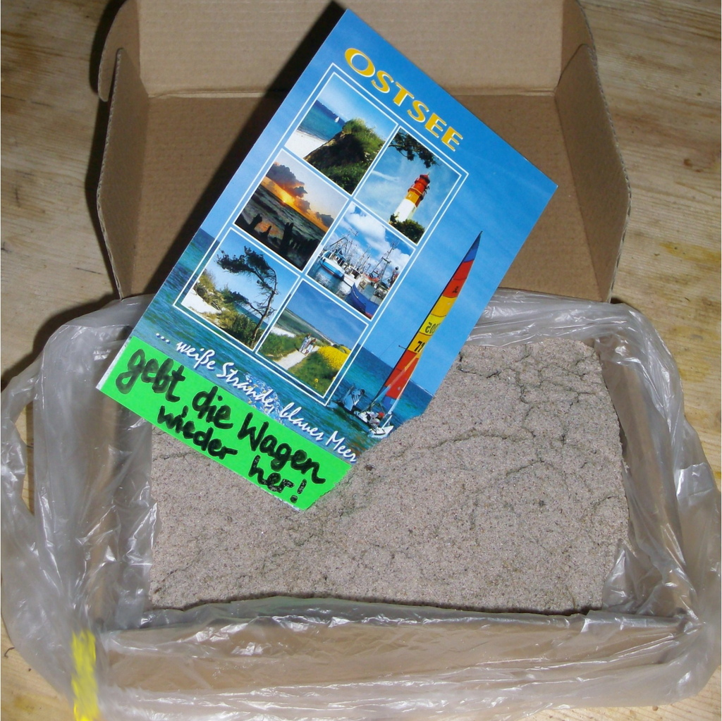 Damit geben wir uns nicht zufrieden. Als Zeichen unserer Solidarität haben wir außerdem Freiburgs Oberbürgermeister Dieter Solomon ein Päckchen geschickt. Inhalt: Jede Menge Sand fürs Getriebe. Denn den gibt es überall!