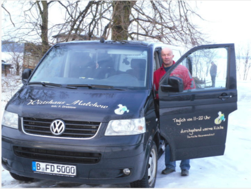 Dreblow, hier mit einem Auto seines Restaurants “Wirtshaus Malchow”