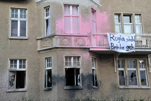 Bei der Attacke in Greifswald sind zehn Fensterscheiben eingeworfen sowie eine übelriechende Flüssigkeit auf die Fassade gesprüht worden.