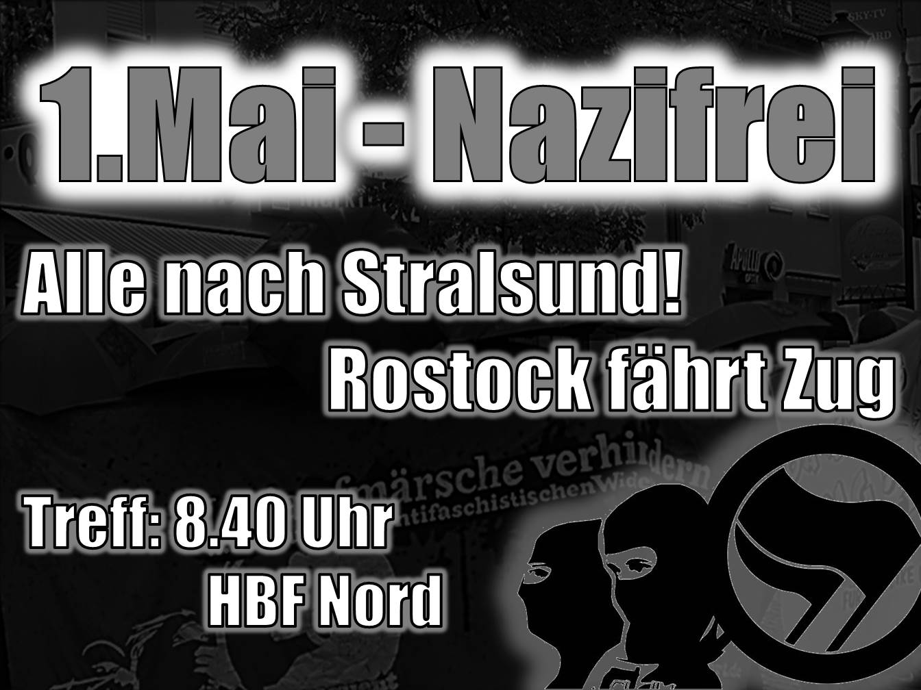 In diesem Jahr mobilisiert die NPD ihre Anhänger*innen für den 1. Mai nach Stralsund. Unter dem Motto „Für Volk und Heimat – Sozial National Legal“ wollen die Faschist*innen sich um 12 Uhr am Hauptbahnhof treffen und von dort aus vermutlich auch in der Altstadt ihr rechte menschenverachtende Propaganda verbreiten.