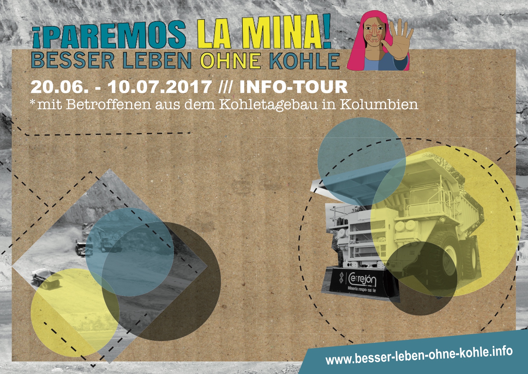 3-wöchige Rundreise mit Anti-Kohle-Aktivist*innen aus Kolumbien vom 20.6. – 12.7.2017 initiiert von BUKO (Bundeskoordination Internationalismus). Vom MOVE-Utopia Zusammentreffen und 38. BUKO-Kongress in Lärz (Mecklenburg-Vorpommern) zum G20-Gipfel in Hamburg. Widerständige Strukturen gegen Kohleabbau in Kolumbien und Deutschland – Öffentlichkeitsarbeit und Vernetzung von Protestbewegungen, Aktivist*innen und von Kämpfen um Ressourcen Betroffenen und Flüchtenden.