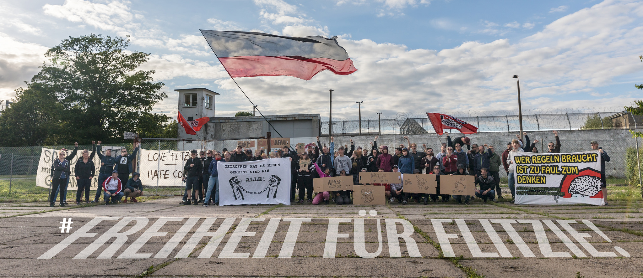 Bleibt auf dem Laufenden! Informiert euch bei der Roten Hilfe über den weiteren Verlauf dieses Falls politischer Justiz, checkt eure eigenen Sicherheitsvorkehrungen und haltet die Augen und Ohren nach weiteren Soli-Aktionen für Flitzie offen! Seien wir kreativ und zeigen dem Staat, dass wir uns nicht einschüchtern lassen und zeigen wir vor allem Flitzie, dass er unser Genosse und nicht alleine ist!