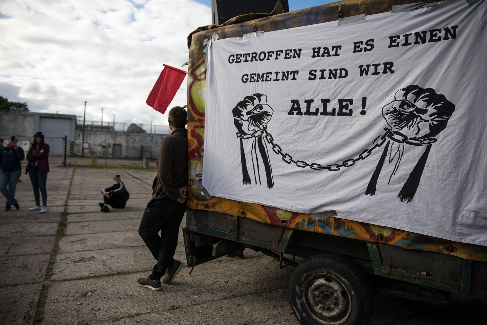 Flitzies Situation ist ein deutlicher Beleg der politischen Justiz in diesem Staat. Schließlich schwebt seit der Durchsuchung auch der Vorwurf des §129 im Raum, der in Anbetracht seiner weitreichenden Konsequenzen rechtsstaatlich nicht einfach nur fragwürdig erscheint, sondern vor allem auch als Nachfolge des Hochverratsvorwurfes und somit Relikt des preußischen Obrigkeitsstaates offen politisch motiviert ist und den eigenen Ansprüchen des bürgerlichen Staates Hohn spricht. Den Behörden eröffnen sich hierdurch Möglichkeiten, die keineswegs auf eine effektive Strafverfolgung oder dergleichen abzielen, sondern in erster Linie dem Ausspähen, Verunsichern und Zerschlagen politischer Zusammenhänge dienen. Wenngleich es auch bislang keine weiteren (bekannten) polizeilichen Aktionen gegen lokale Genoss*innen gegeben hat, sollte allen klar sein, dass der Angriff auf Flitzie und einen weiteren Genossen ein Angriff auf unsere Bewegung und Strukturen insgesamt darstellt. Das Großaufgebot, mit dem die Bullen in unser Viertel gedrungen sind, sprach die entsprechend deutliche Sprache der Einschüchterung. Der G20-Gipfel stellt hierbei einen Vorwand dar, mit dem die Behörden die für sie passenden Bilder inszenieren können, welche legitimen und notwendigen Protest gegen Ausbeutung, Verwertungslogik und Fremdbestimmung in seiner Gesamtheit kriminalisieren und jedwede Kämpfe und Perspektiven der radikalen Linken diskreditieren sollen.