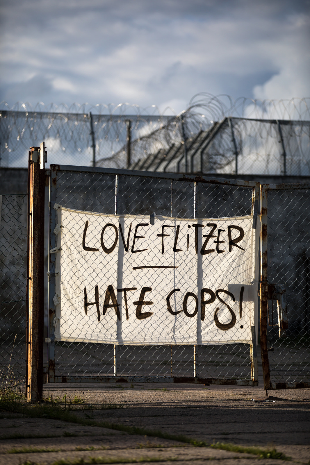 Am gestrigen Dienstag (04.07.2017) versammelten sich rund 80 Menschen vor der JVA Bützow, um ihre Solidarität mit dem Genossen Flitzie und allen anderen von Repression betroffenen Genoss*innen zum Ausdruck zu bringen. Flitzie sitzt seit Montag (03.07.2017) im Bützower Knast ein. Unter dem Vorwand der Gefahrenabwehr im Rahmen des anstehenden G20-Gipfels drangen am vorangegangenen Samstag Einsatzkräfte in einer gemeinsamen Aktion des LKA Hamburg und der Rostocker Polizei in Flitzies Wohnung sowie zu einem weiteren Genossen vor und nahmen beide in der Rostocker Ulmenwache in Gewahrsam, wobei der weitere Genosse nach einigen Stunden die Bullenwache wieder verlassen konnte.