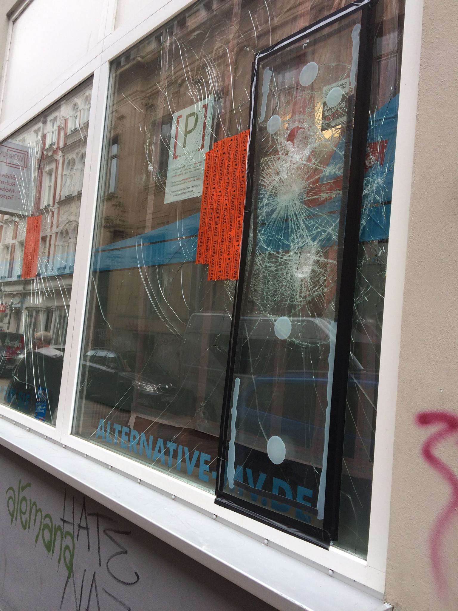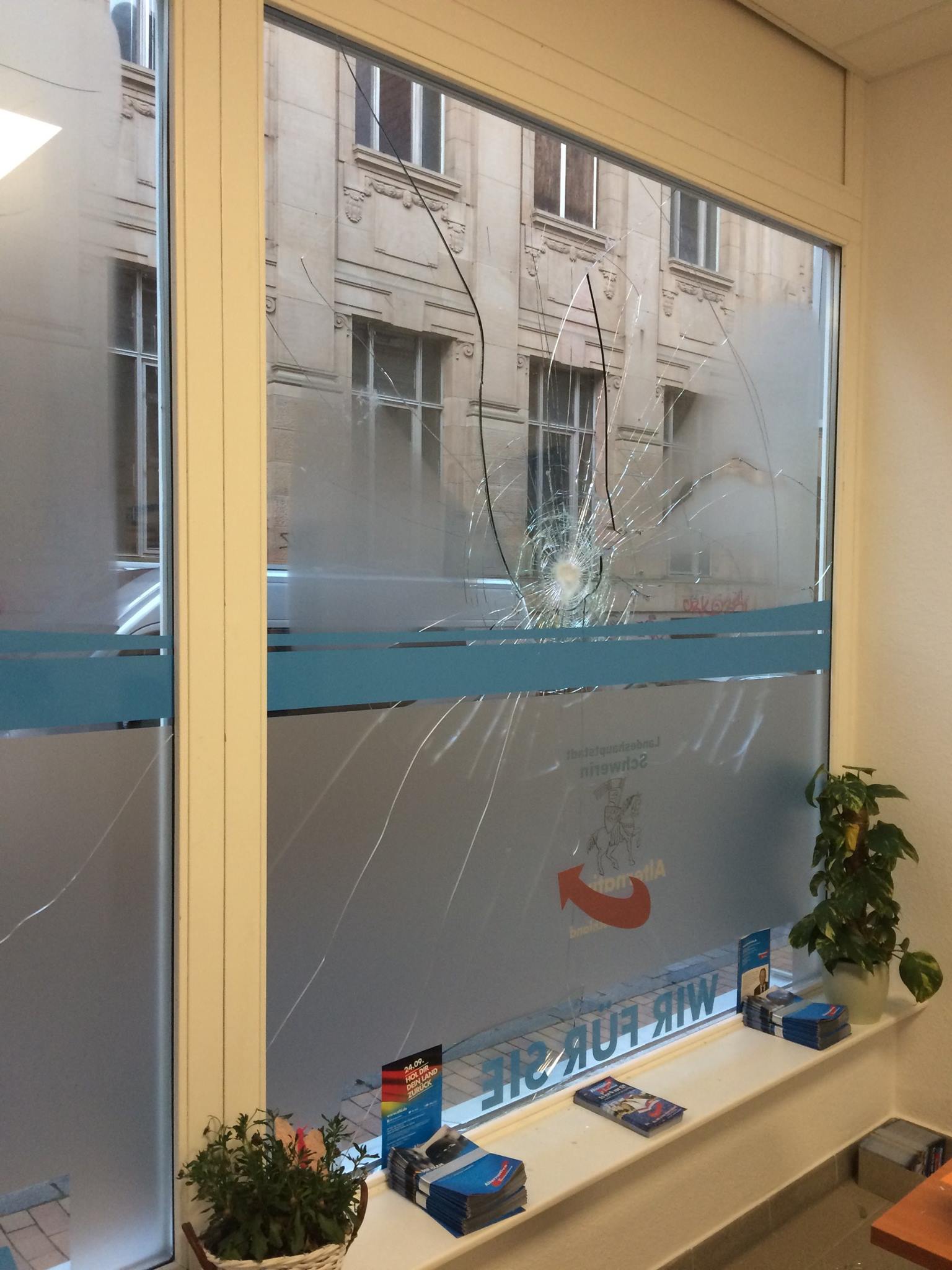 Schwerin (ots) – Am 13.07.2017, gegen 3:30 Uhr, kam es zu einer erneuten Sachbeschädigung am Wahlkreisbüro der AfD in der Schweriner Friedrichstraße. Ein Zeuge meldete sich in den frühen Morgenstunden bei der Polizei, weil er aus Richtung des Büros lautes Klirren vernommen hatte.