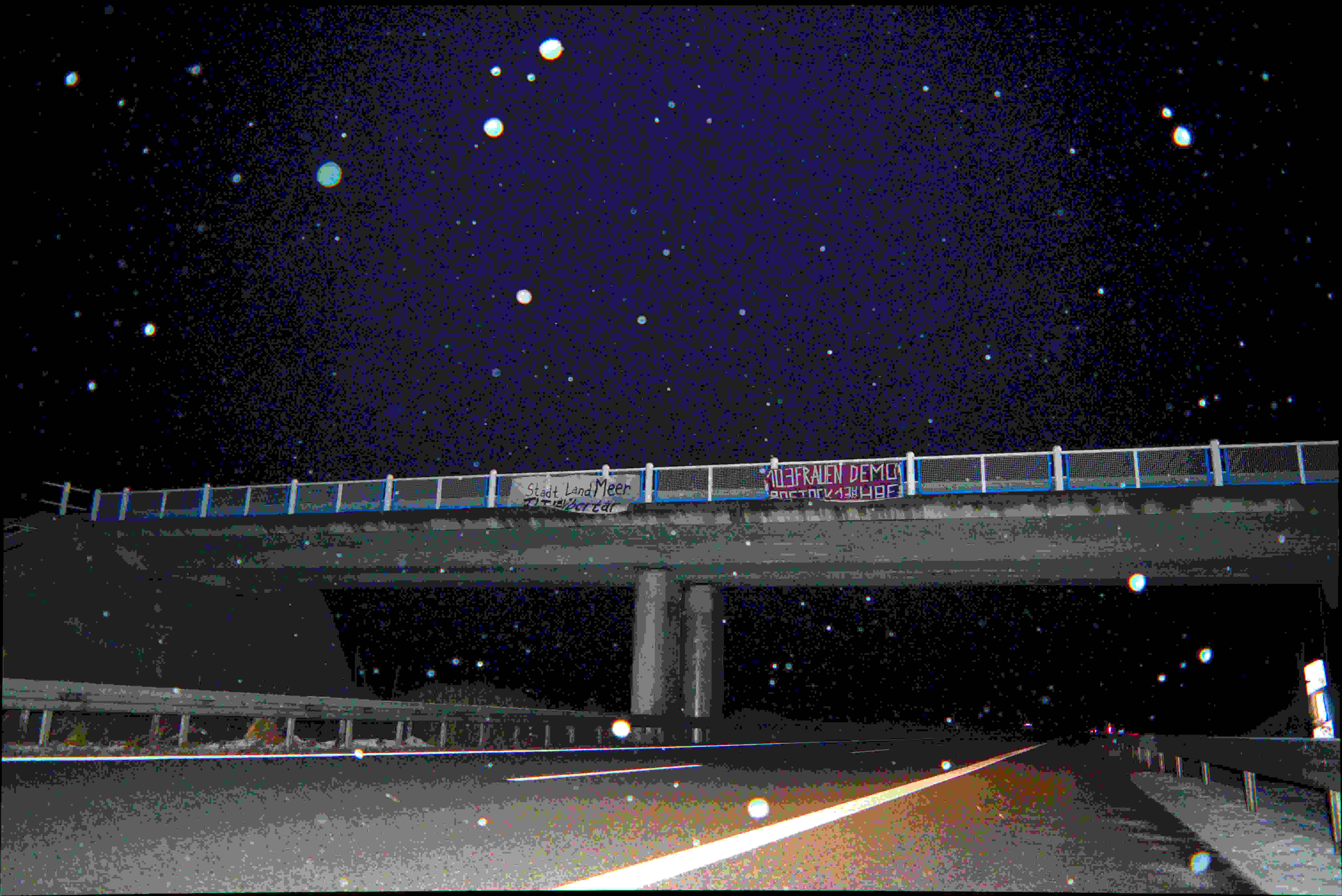 [Original erschienen unter https://de.indymedia.org/node/18685] In der Nacht zum 08.März wurden auf der Autobahn A20 mehrere Transparente entdeckt. Zu lesen war: „Stadt, Land, Fluss, Emanzipation ein Muss!“ „Stadt, Land, Meer, FLTI* und libertär“ sowie „10.03.Frauen*tagsdemo Rostock 13uhr HBF“