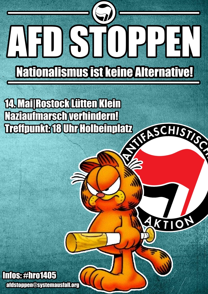 Unter dem Motto: „Wir bleiben dran! Islamisierung stoppen – Für eine sichere Heimat!“ hat der Kreisverband der AfD Rostock eine Demonstration am 14.05. durch den Rostocker Stadtteil Lütten Klein angemeldet. Treffpunkt des rechten Mobs ist die Marktfläche in der Warnowallee.