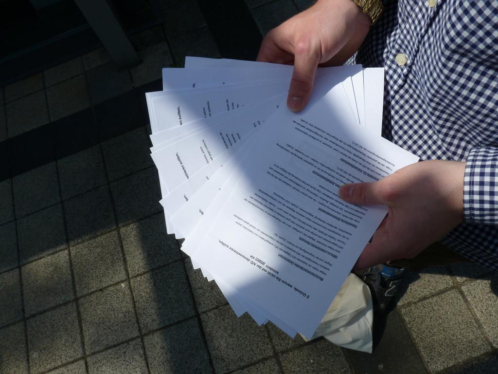 Am heutigen Tag machten mehrere dutzend Antifaschist_innen aus Rostock einen Stadtteilspaziergang in Lütten Klein, um die Anwohner_innen über den morgigen Aufmarsch der AfD zu informieren.