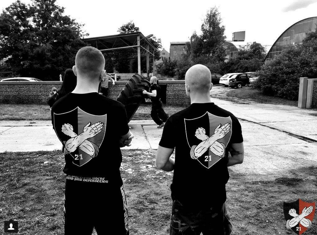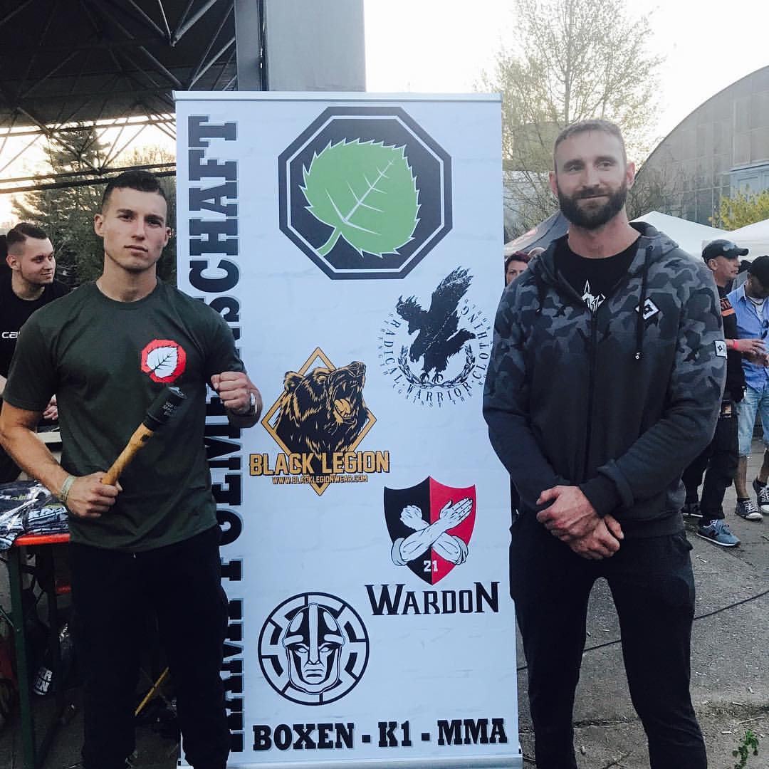 Eders und Oertels Präsenz auf dem „Schild & Schwert“ in Ostritz dürfte auch weniger ihrer Teilnahme als Kämpfer auf dem Turnier verschuldet gewesen sein. Wie schon auf anderen Events deutlich wurde, ist ihre Trainingsgruppe „Wardon 21“ fester Bestandteil der KdN-Struktur. Darüber hinaus gilt Eder international als Kontaktperson für die extrem rechten Kampfsportmarke „Greifvogel Wear“. Die Marke ist nicht nur Teil des Imperiums des in Südbrandenburg beheimaten Neonazi-Musiklabels „OPOS-Records“ von Sebastian Raack, sondern ist auch langjähriger Sponsor des „Kampf der Nibelungen“.