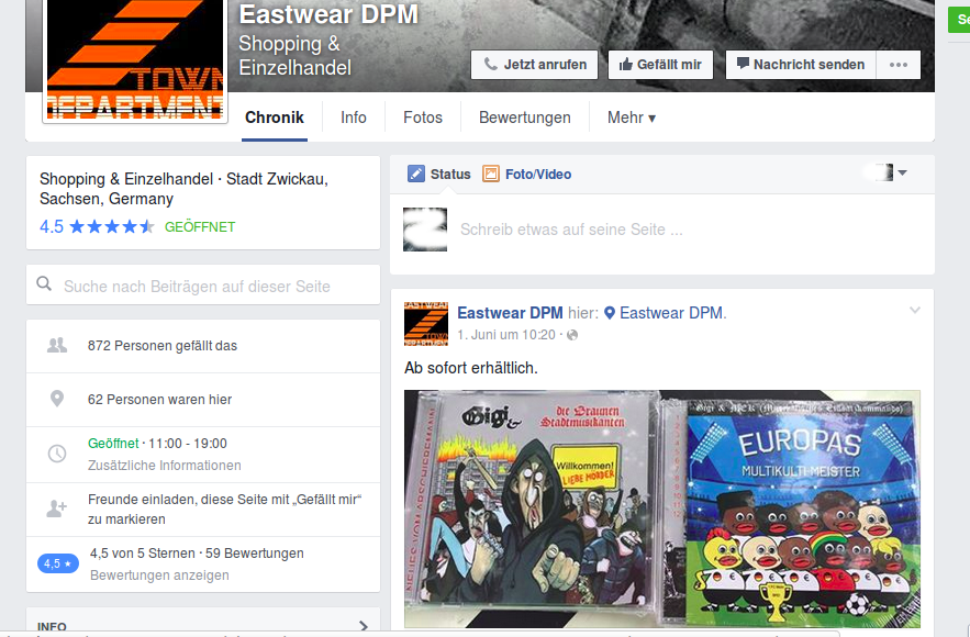 Der von Marschner bis Anfang der 2000er Jahre ebenfalls in Zwickau betriebene rechte Szeneladen „The Last Resort-Shop“ heißt seit geraumer Zeit „Eastwear Department“. Dass Marco Hampel den Laden von Marschner übernahm und bis heute Geschäftsführer ist, verwundert uns nicht. Neben CDs einschlägiger RechtsRock-Bands findet sich im Laden ein breites Sortiment rechter Szeneklamotten wie „Thor Steinar“ und „Eastfight Hatewear“.