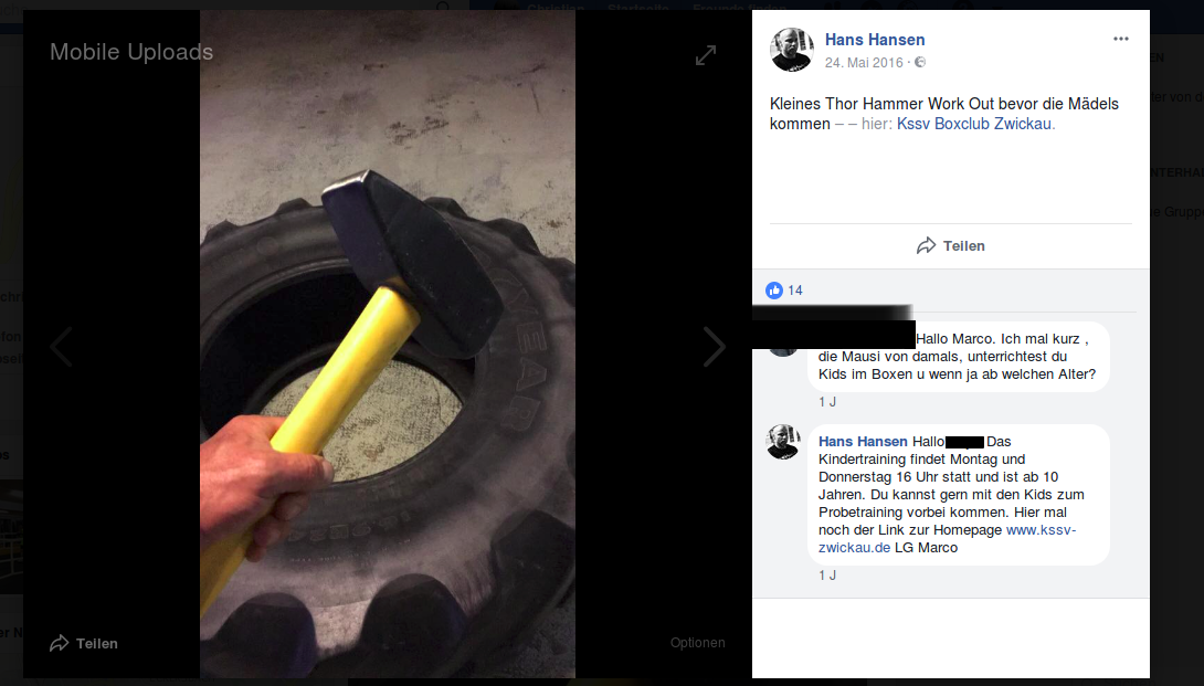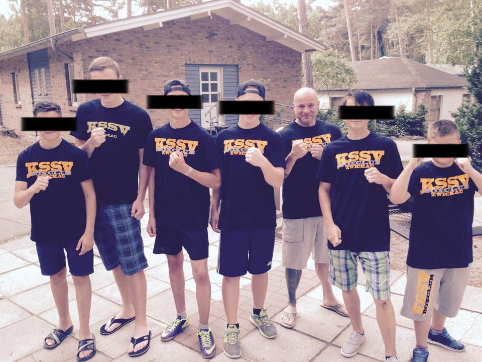 Im „KSSV Boxclub Zwickau“ trainieren allerdings nicht nur Anhänger des „A-Block“, sondern eben auch der berits erwähnte Marco Hampel. Schon 2016 bewarb er Trainingkurse für Kinder im „KSSV Boxclub Zwickau“. Bilder in den sozialen Netzwerken zeigen ihn jüngst im Mai 2018, augenscheinlich als Leiter eines solchen Kurse. Im Oktober 2017 war Hampel ebenfalls als Vertreter des „KSSV Boxclub Zwickau“ beim „23. Boxturnier um die Pokale der Stadt Zwickau“ anwesend. Bedeutet dies, dass die Stadt Zwickau den Boxclub samt dessen einschlägig bekannten Klientel offiziell unterstützt? Nun, auf der Webseite des Boxclubs bedankt man sich jedenfalls bei der Stadt Zwickau „für die langjährige Sportförderung“.