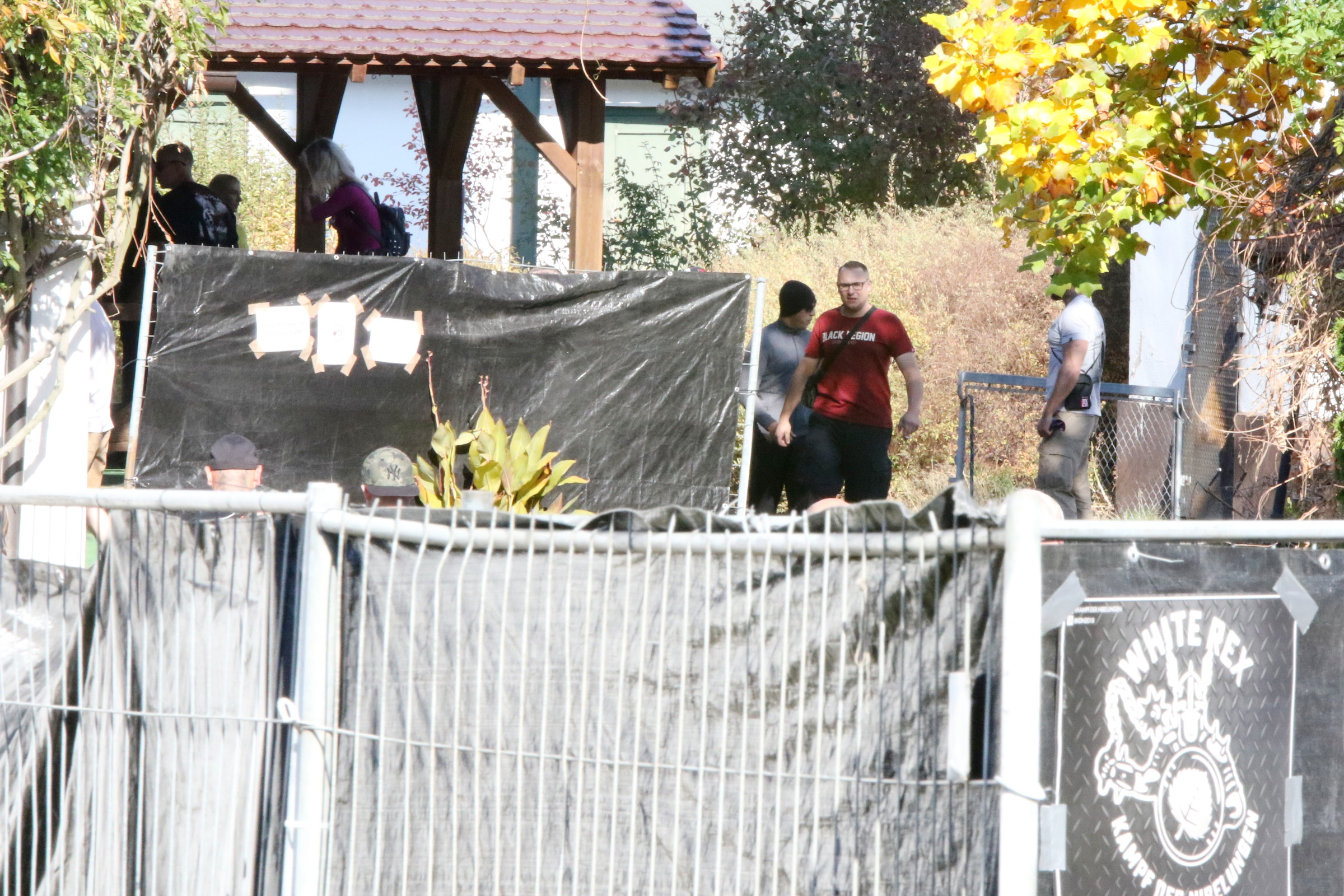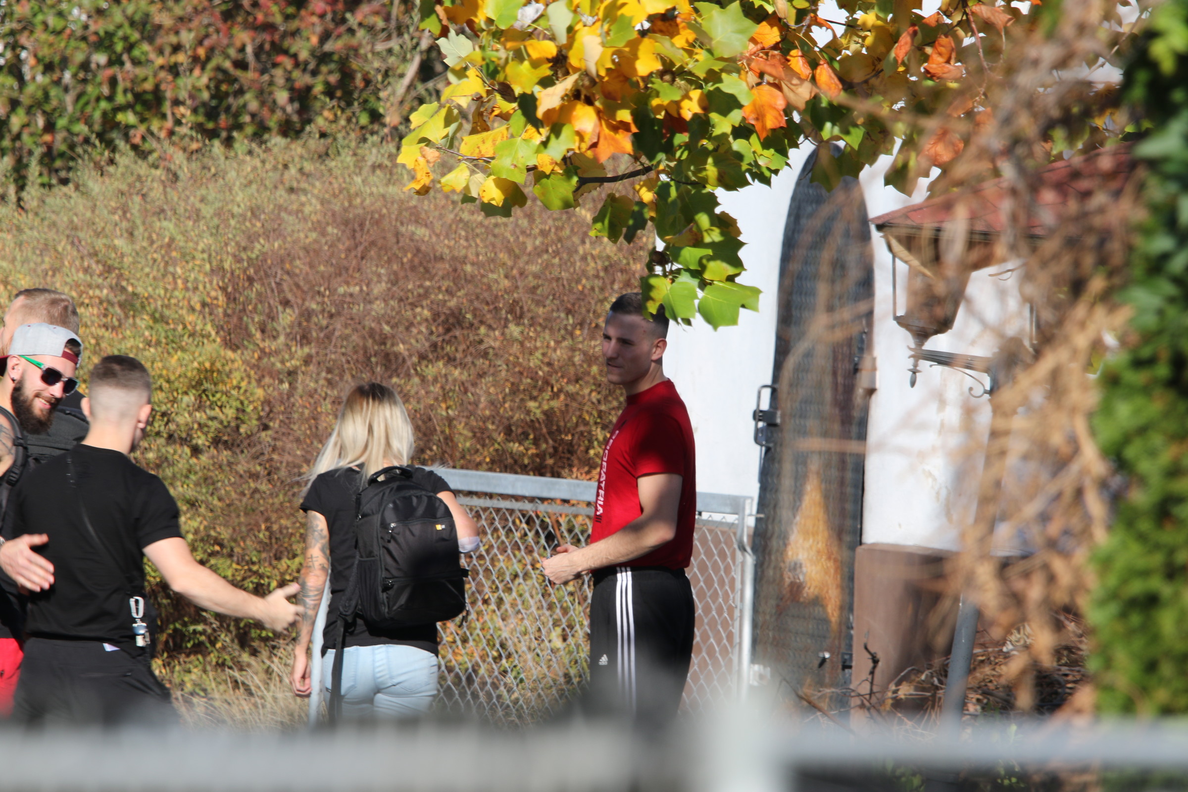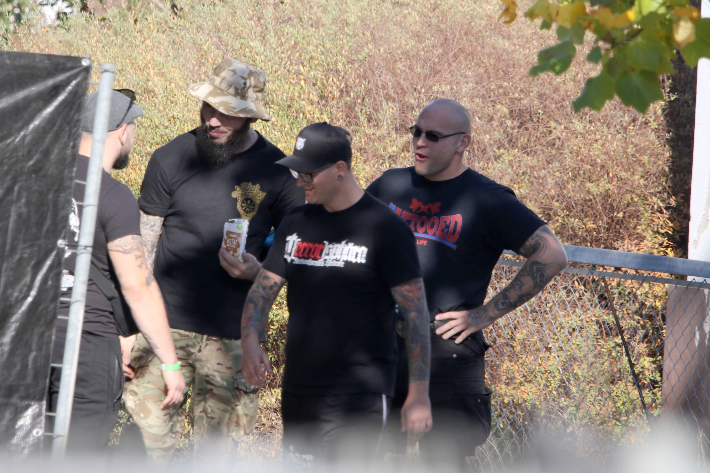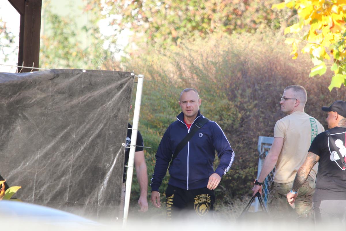 Wenn Medien über Neonazis im Kampfsport berichten, dann wir der fließend deutsch sprechende russische Neonazi, Hooligan und Gründer der Kampfsport-Promotion „White Rex“ Denis Nikitin oftmals als zentrale Figur genannt. Zu Recht, denn er gilt als Stichwortgeber für die wachsende extrem rechte Kampfsportszene. Seit 2008 reist der mittlerweile in Kiew wohnhafte Nikitin durch Europa und unterstützt alle relevanten rechten Turniere und Gruppen. Für den KdN gilt er als Hauptsponsor, sein Label „White Rex“ stand in diesem Jahr zum ersten Mal als Mitveranstalter des Turniers auf den Plakaten. Am 13. Oktober reiste Nikitin schon früh mit den zwei „Nummerngirls“ an. Sichtlich verärgert war er von den anwesenden Journalist_innen, die ohne dass er es beeinflussen konnte, Fotos von ihm schossen. Denn Nikitins täglich Brot ist nicht nur die Vermarktung von „White Rex“, sondern auch die Selbstinszenierung. Dabei bestimmte er bisher nur allein, welchen Formaten er Interviews gab und wer ihn fotografieren durfte. Journalist_innen widmen sich seiner Person teilweise mit seitenlangen Portraits. In Ostritz wirkte er auf die anwesenden Berichterstatter_innen während seiner Anreise zunächst aggressiv, ließ sich jedoch kurz darauf auf selbstdarstellerische Posen ein.