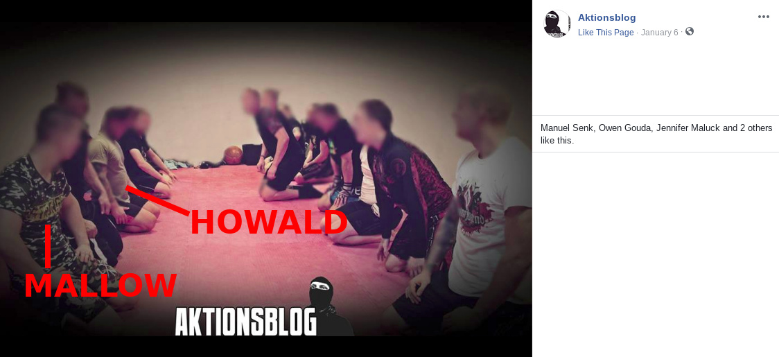 Nicht erst seit der Teilnahme an vergangenen AfD-Demonstrationen in Rostock sind David Mallow und Guido Howald durch rechte Aktivitäten aufgefallen. [4] David Mallow gilt als einer der Kernmitglieder des Neonazinetzwerks „Aktionsblog“ (AKB), das vorwiegend im Raum Rostock und zunehmend auch Güstrow aktiv ist, wo Mallow mittlerweile auch lebt. David Mallow machte zuletzt als neues Aushängeschild der neuen europäischen Nazi-Kampfsport-Bewegung von sich reden [Artikel]. Im Laufe der letzten Jahre trat er mehrmals für das Team „Kampf der Nibelungen/ White Rex“ als Wettkämpfer in den Ring. Auch in anderen Zusammenhängen steht David Mallow für seine menschenverachtende Ideologie ein. So fungierte er beispielsweise als Ansprechperson für den „Aktionsblog“ auf dem Schild und Schwert- Festival im Herbst 2018. [5] Auch Guido Howald ist kein Unbekannter. Seit 2018 taucht Howald nachweislich bei internen Veranstaltungen des Neonazinetzwerks „Aktionsblog“ auf und scheint sich diesem auch zugehörig zu fühlen. Neben David Mallow nahm Howald auch an der ersten gemeinsamen Trainingseinheit des nach eigener Aussage neuen „sportlichen Flügels“ des AKB teil, welcher Kampfsport für Neonazis im Raum Rostock und Güstrow propagiert. Trainiert wurde erneut in einem Güstrower Sportraum. [6-9]