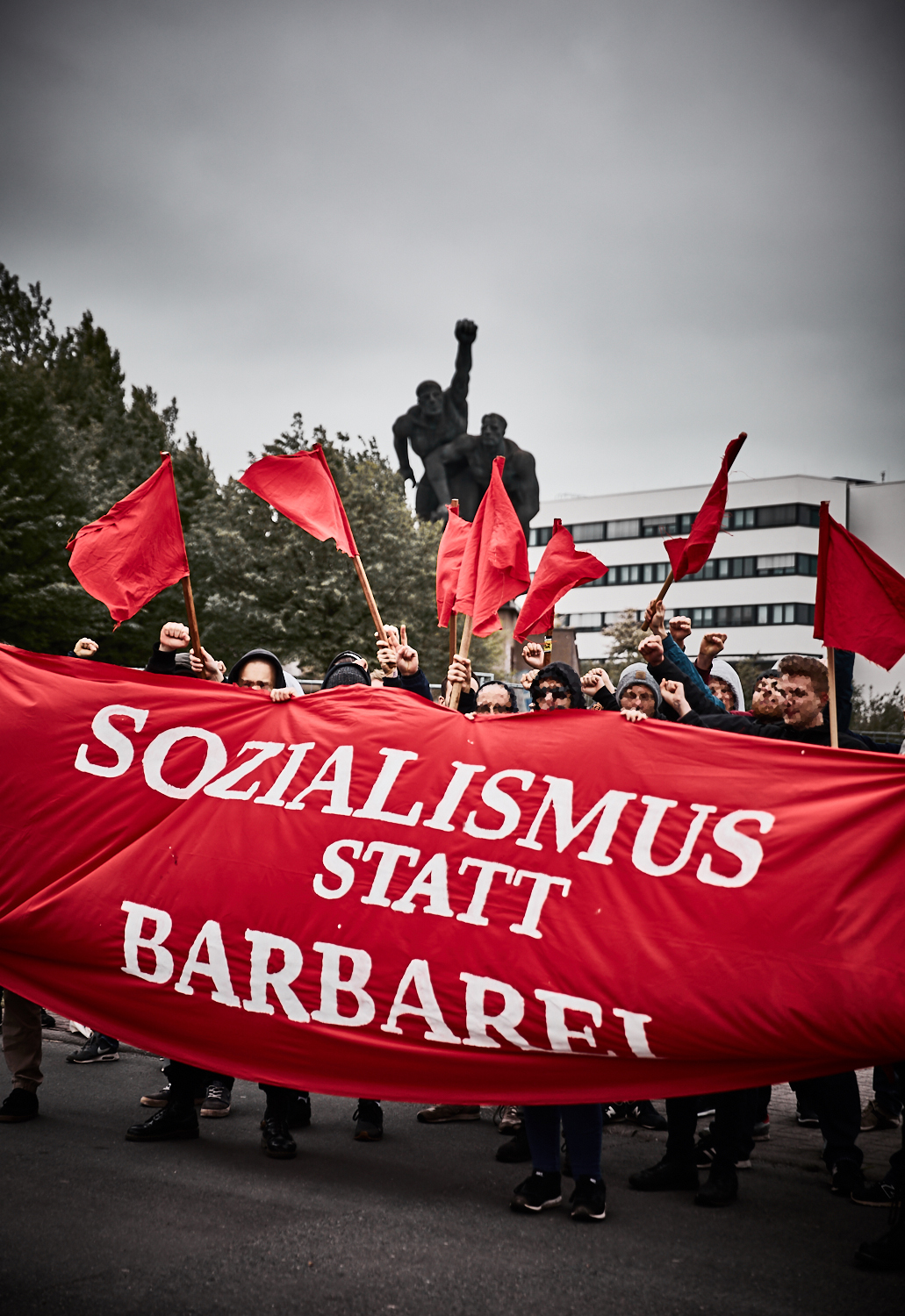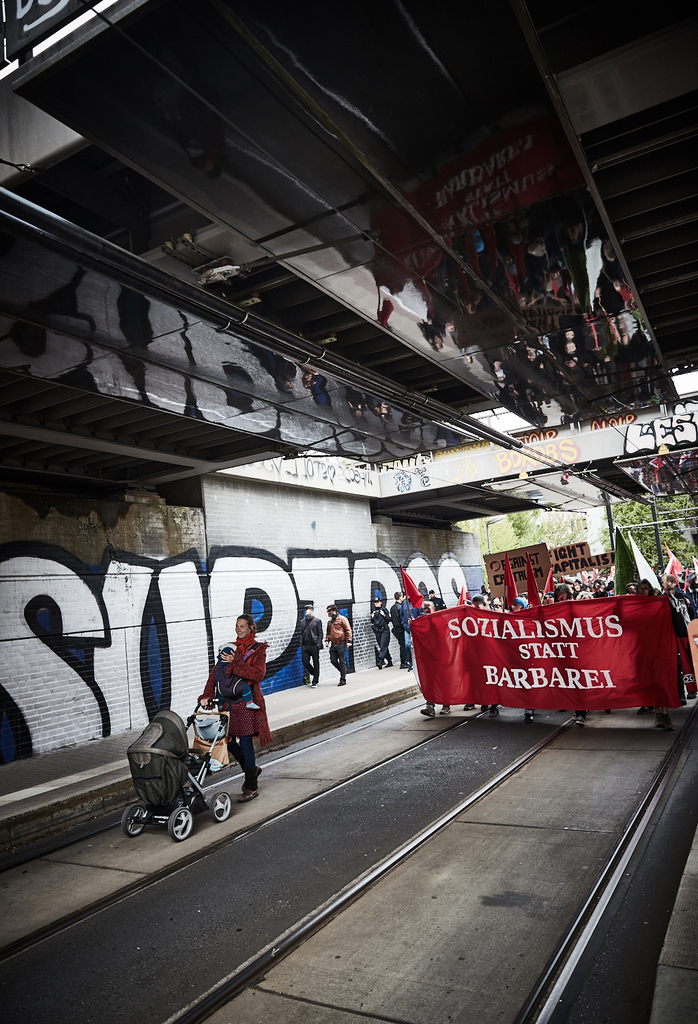 Der Umzug führte traditionell vom Doberaner Platz zum Kastanienplatz. Nach der Hälfte der Strecke spalteten sich die Jugendlichen jedoch ab. Spontan zogen sie durch die Kröpeliner Tor Vorstadt zu einer eigenen Kundgebung am Denkmal für die revolutionären Matrosen. Dort folgten Redebeiträge, die die speziellen Auswirkungen des Kapitalismus auf Jugendliche beleuchteten. Dabei prangerten sie Verdrängung, Repression, hohe Mieten und auf Verwertung abzielende Bildungspolitik an. Die Veranstaltung schloss mit dem Aufruf sich gegen Kapitalismus und Faschismus zu organisieren. Dieser Schritt ist den Jugendlichen, die all das auf die Beine stellten, scheinbar bereits gelungen.