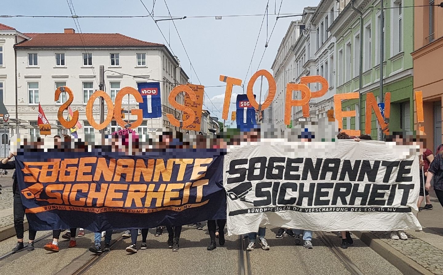 Am 16.06. demonstrierten in Schwerin über 1000 Menschen gegen das neue Sicherheits- und Ordnungsgesetz, kurz SOG. Der Protest wurde vom Bündnis „SOGenannte Sicherheit“ organisiert, einem Zusammenschluss von verschiedenen Initiativen, Parteien und Fußballfans. Auch Jurist_Innen sowie namhafte Künstler_Innen unterstützen das Bündnis.