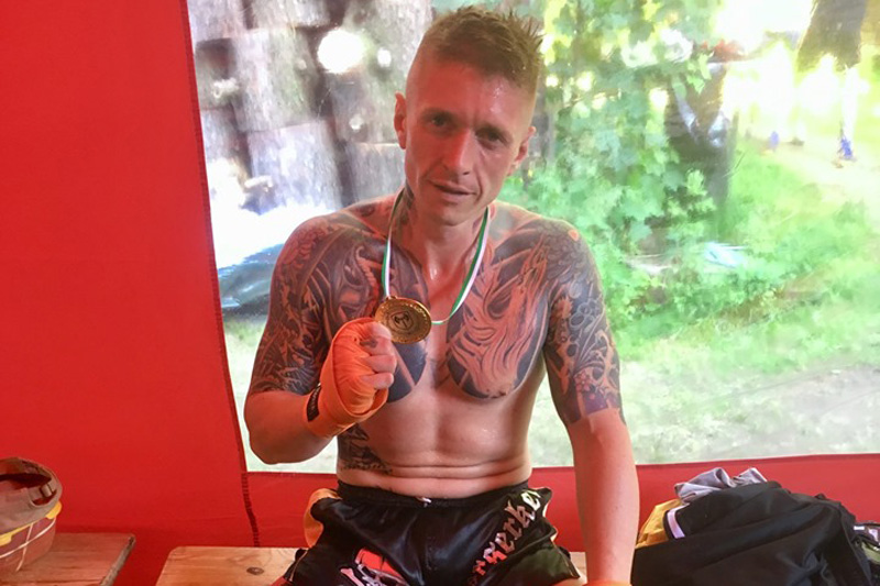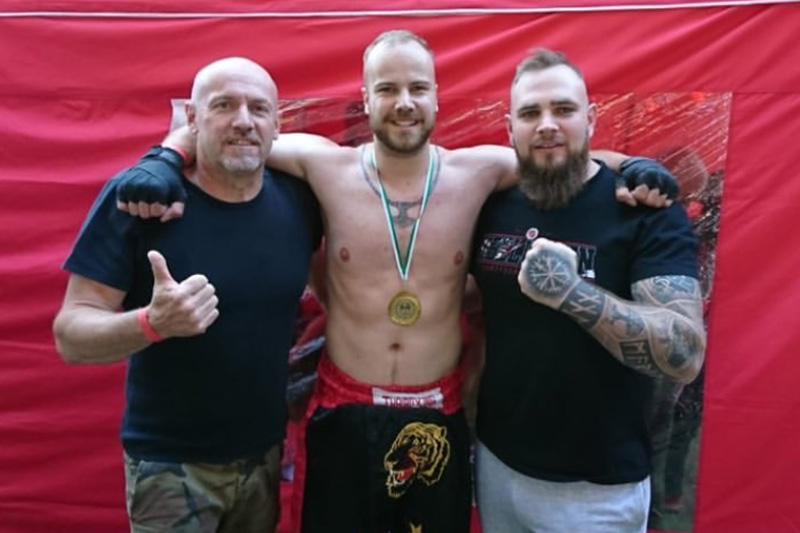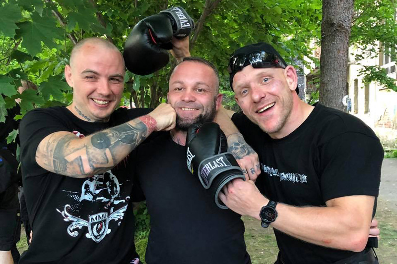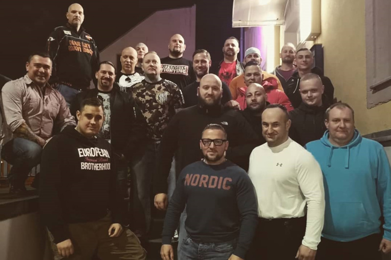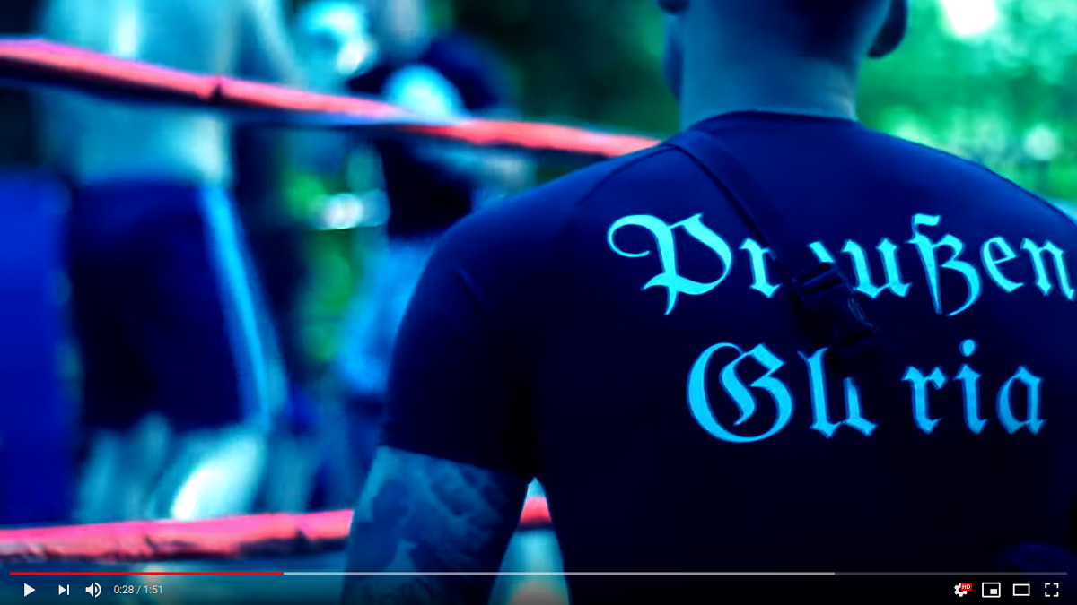 Aus Brandenburg, mit Wohnsitz in Strausberg, reiste auch Tobias Vogt zum diesjährigen «Tiwaz» und trat dort als Kämpfer an. Schon im letzten Jahr stieg er in Grünhain-Beierfeld in den Ring, wie auch bei mindestens zwei Turnieren des KdN in Ostritz. Vogt, Sänger der RechtsRock-Band «Exzess», kämpfte jüngst in Crossen gegen den Franzosen Tomasz Szkatulski. Der im Norden Frankreichs wohnhafte Neonazi war mit zwei weiteren französischen Neonazis zum «Tiwaz» angereist. Auch sie bestritten Kämpfe für Szkatulskis Team «Pride France», einen u. a. gegen einen tschechischen Neonazi. «Pride France» wirkte nicht nur beim «Tiwaz» als unterstützende Struktur, sondern hatte zuletzt auch das Neonazi-Turnier «Pro Patria Fest» im April 2019 in Griechenland mitorganisiert, an dem auch um die 50 Neonazis aus Deutschland teilnahmen. Die französische Kampfsportmarke und -promotion ist – neben dem KdN und «White Rex» – federführend an der Entwicklung rechter Turniere in ganz Europa beteiligt.