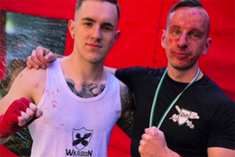 Zum ersten Mal schickte die NS-Straight-Edge-Gruppierung «Wardon 21» auch einen Kämpfer in den Ring. Dies stellt eine Expansion ihres Wirkungskreises dar, da diese bislang zwar alle Kampfsport-Events der Szene seit ihrer Gründung 2017 unterstützt hatte, vorrangig jedoch in der Logistik der Turniere und als ideologischer Überbau eingebunden war. Verwundern dürfte die jüngste aktive Beteiligung im Ring allerdings nicht. Ihr Kämpfer, Julian Menzel aus dem Raum Bautzen in Ostsachsen, bewegt sich schon seit einiger Zeit im Kreis der sich elitär gebenden Gruppe. So organisierte er mit «Wardon 21» am 20. April 2019 eine Wanderung in der sächsischen Schweiz – den «Führermarsch», zu Ehren Adolf Hitlers. Beim «Tiwaz» bestritt Menzel gleich zwei Kämpfe, einen gegen Marcel Ruckert vom Team «Preußens Gloria» aus Brandenburg. Als Coach für Menzel wirkte in Crossen der aus Südthüringen stammende Philipp Liebetrau. Er war schon 2017 auf einem rechten Turnier in Frankreich Coach von Kai-Andreas Zimmermann – „Stützpunktleiter“ der Neonazi-Partei «Der III. Weg» in Bayern. Dort vertrat Zimmermann das Team des KdN, zu dem auch Liebetrau zählt.