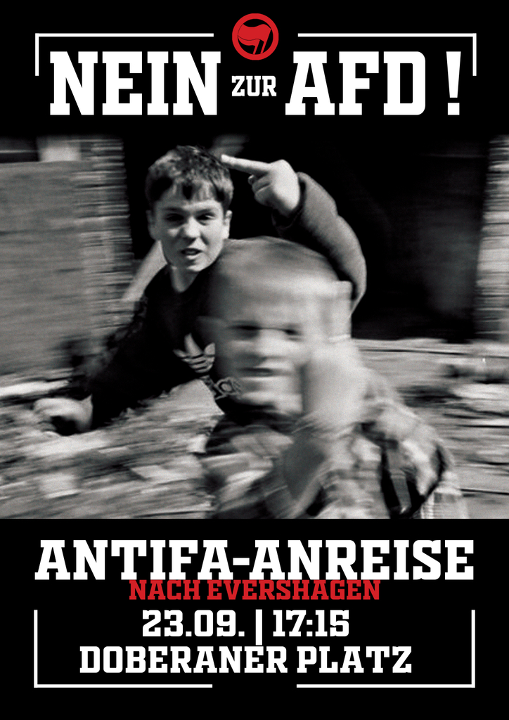 [Original erschienen unter https://de.indymedia.org/node/37459] Am 23.09. versucht die AfD in Rostock erneut ihre rechte Hetze zu verbreiten. Treten wir ihnen gemeinsam entgegen! Informiert euch, verbreitet die Info und kommt mit uns nach Everhagen! Antifa unite – für eine solidarische Gesellschaft!