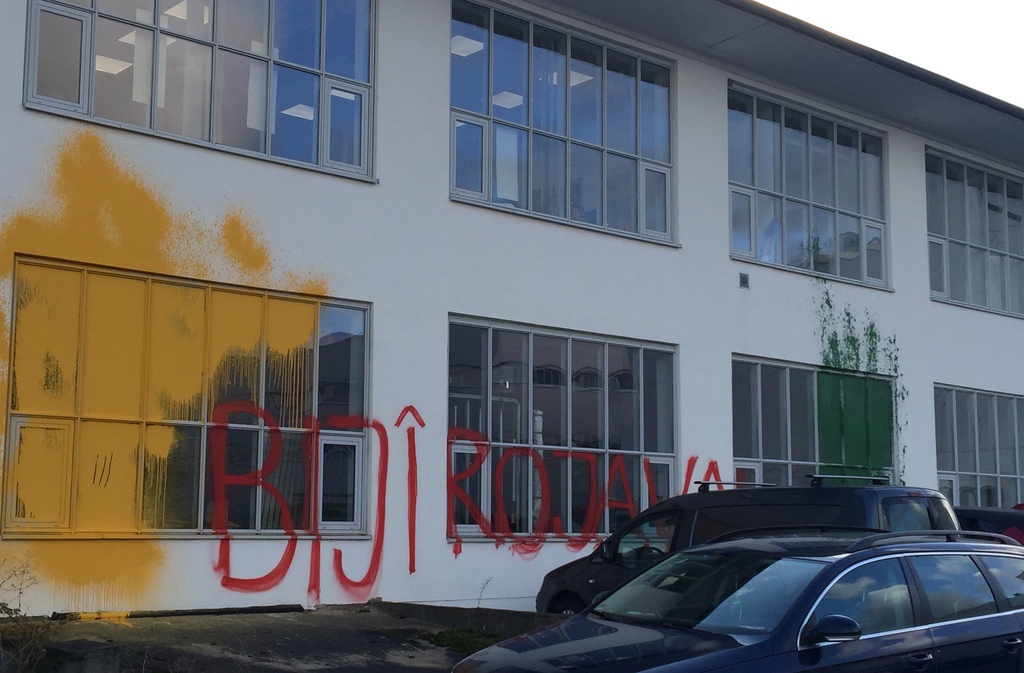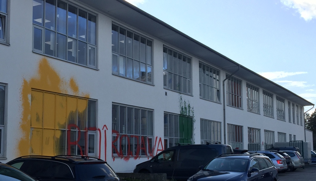 [Original erschienen unter https://de.indymedia.org/node/42987] In den frühen Morgenstunden des 28.10. haben wir den Gebäudekomplex, im Rostocker Stadteil Schutow, in dem auch Rheinmetall ein Büro betreibt mit Farbe angegriffen. Die Fassade ziert nun der Schriftzug Biji Rojava, sowie mehrere Liter Farbe.