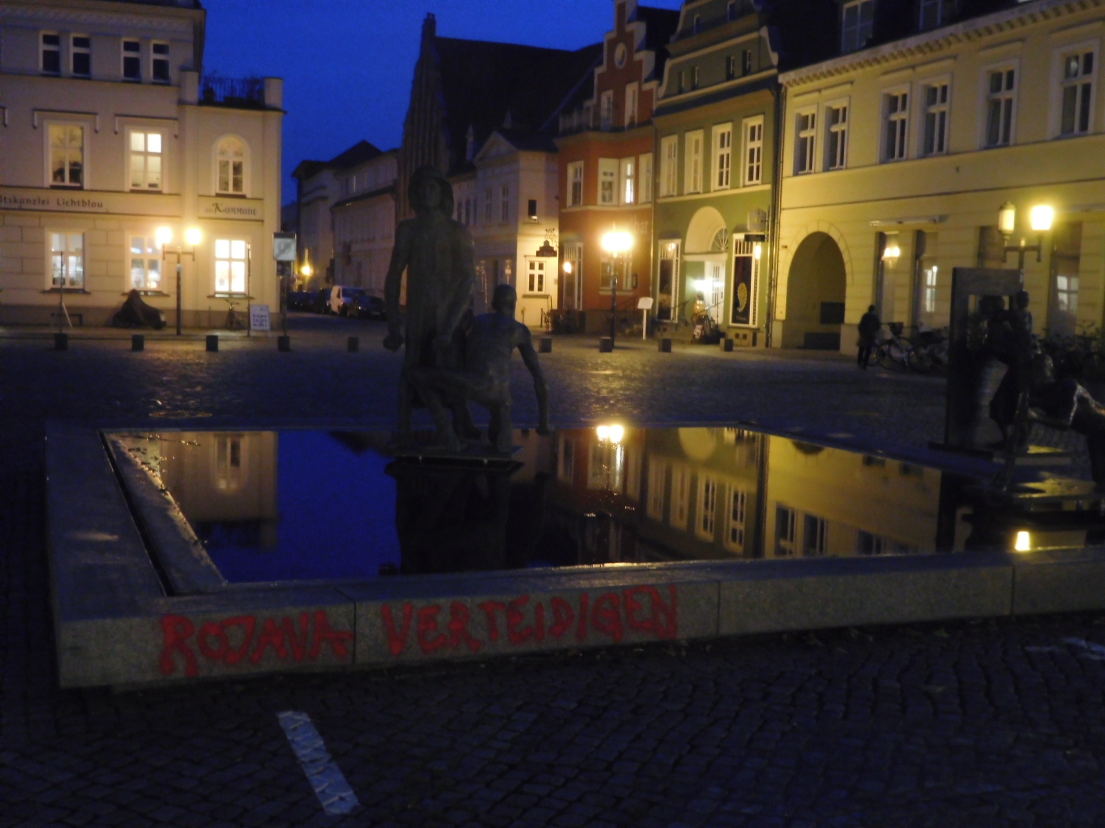 Am Abend des 31.10. färbten wir das Wasser des Fischerbrunnens vor dem Rathaus Greifswalds rot. Als Symbol für das Blutbad, das der türkische Angriffskrieg in Rojava anrichtet, wollen wir unserer Wut über die heuchlerische deutsche Politik Ausdruck verleihen und der Freund*innen und Genoss*innen gedenken, die dem faschistischen Angriffen der Türkei zum Opfer gefallen sind.