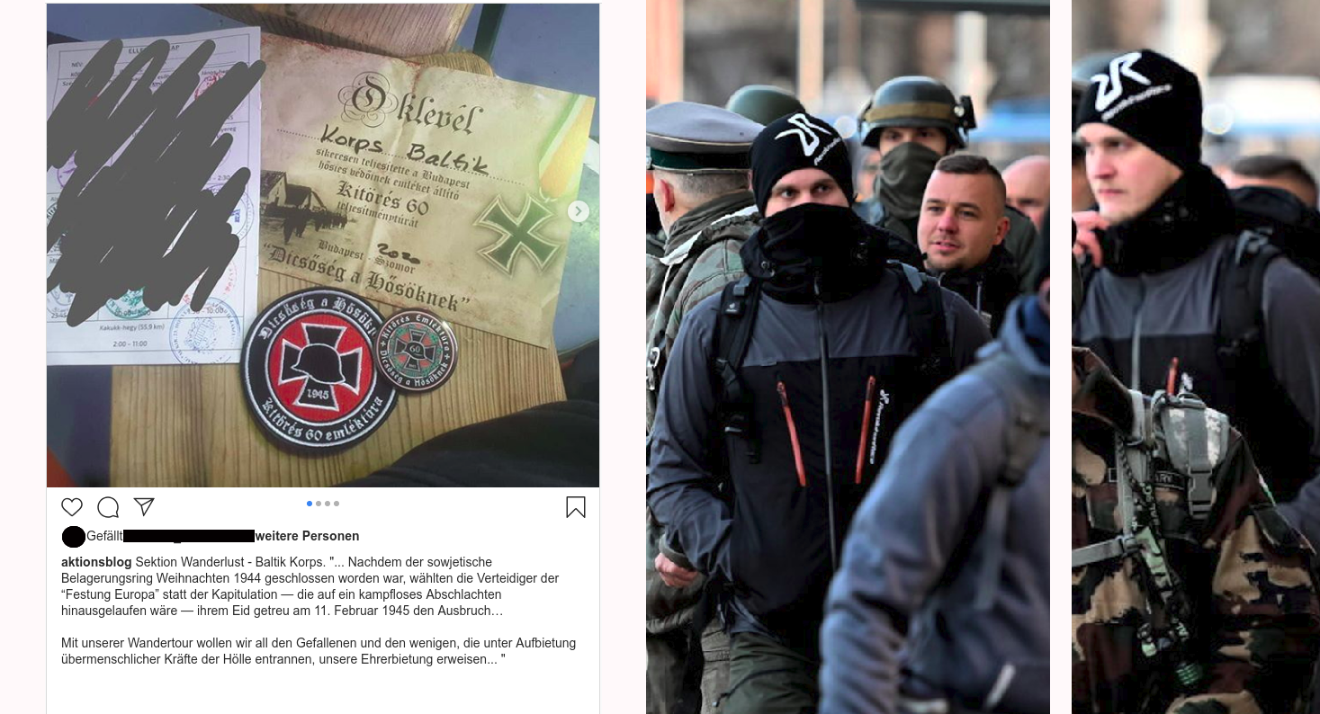 In unserer ersten Version zeigten wir ein Bild vom „Ausbruch 60“-Marsch in Ungarn, auf dem laut unserer Behauptung Helge Wolfinger und David Mallow zu sehen sein sollen. Dabei handelte es sich um einen Irrtum. Auf dem Bild sind diese nicht zu sehen, ihre Gruppe „Baltik Korps“ nahm jedoch teil. Wir haben dies berichtigt.