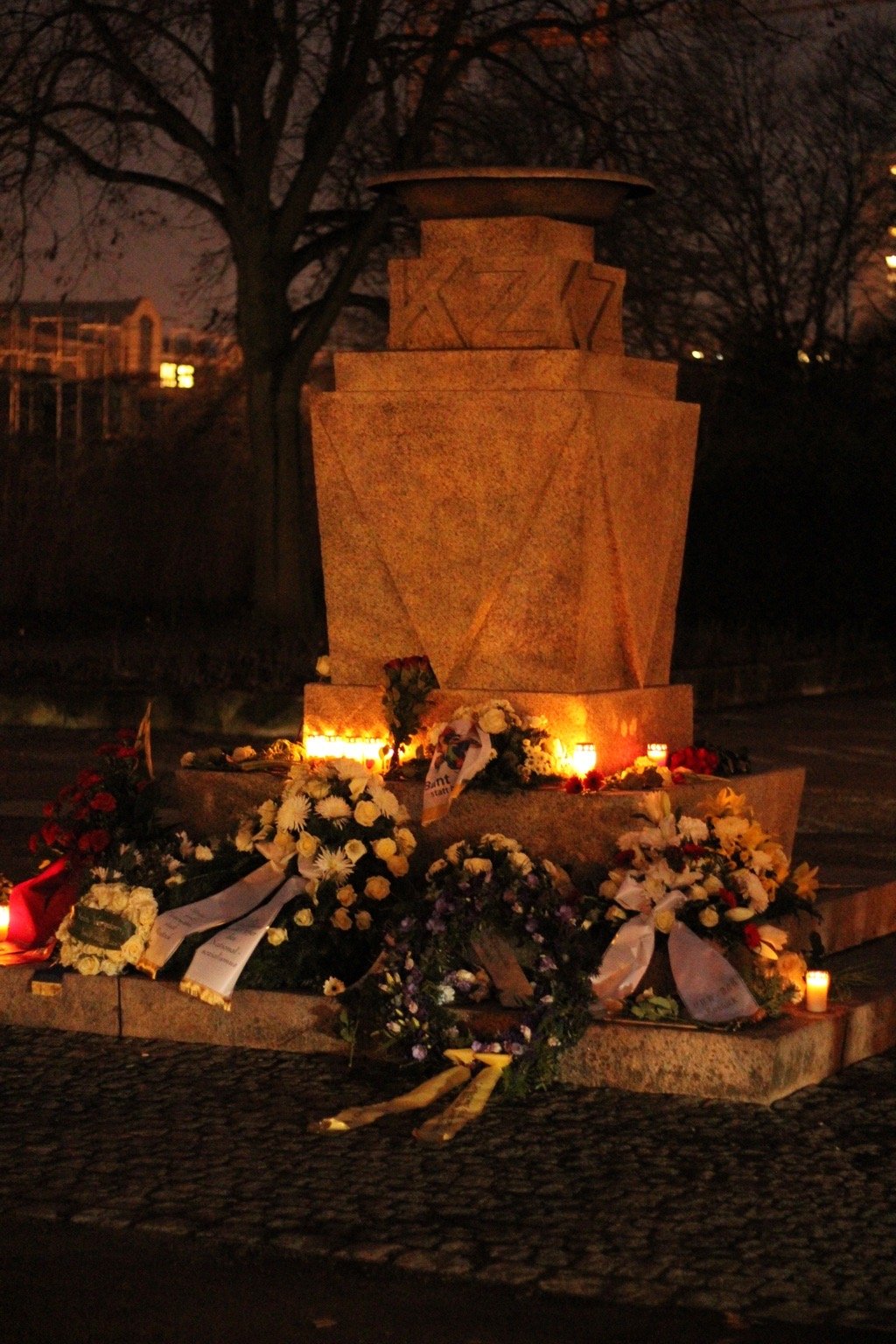 Nach einer kurzen Rede wurden Rosen und Kränze niedergelegt und es folgte eine Gedenkminute für die Opfer des Nationalsozialismus.