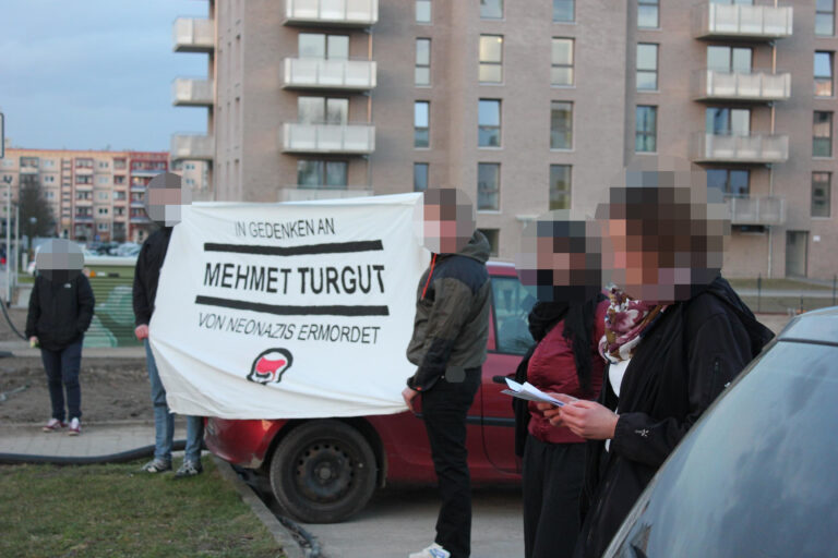 [Original erschienen unter https://de.indymedia.org/node/143360 ] Am heutigen Tag, dem 25. Februar 2021, versammelten sich ca. 70 Antifaschist:innen, um gemeinsam dem vom NSU ermordeten Mehmet Turgut zu gedenken. Nach einer gemeinsamen Radtour zum Mehmet Turgut-Denkmal im Neudierkower Weg (Stadtteil Toitenwinkel) wurde eine kurze Rede gehalten. Anschließend folgte eine Gedenkminute und das Niederlegen von mitgebrachten Blumen und Kerzen.