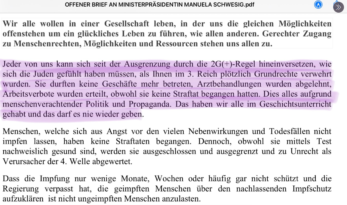 Weiterhin tritt die Wirtschaftsjuristin Ina Schuppa-Wittfoth wiederholt als Rednerin auf, sie zeichnet darüberhinaus für einen Offenen Brief an Manuela Schwesig verantwortlich, der unter Anderem dieses bezeichnende Zitat enthält (Bild 3)