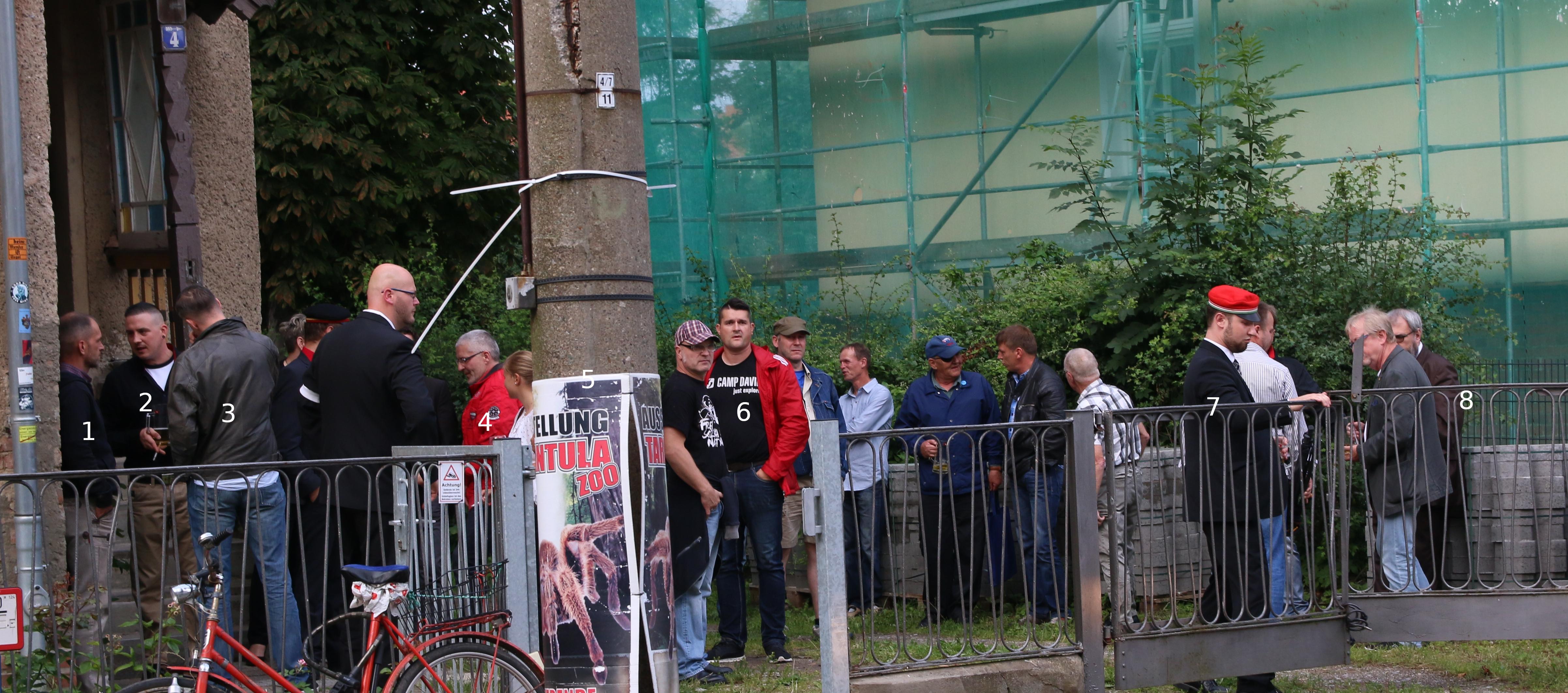 Bild 6 Vortrag in der Rugia (2017) 1. Tino Müller (NPD), 2. Daniel Neumann (Kameradschaftsstrukturen Stralsund), 3. Enrico Harmisch (NPD), 4. Norbert Kühl, 5. Eike Liefke (IB), 6. Thomas Krüger (Aktionsgruppe Nord-Ost / „Initiative für Greifswald“), 7. Max Bartusch (Rugia), 8. Prof. Ralph Weber (ex. AfD)