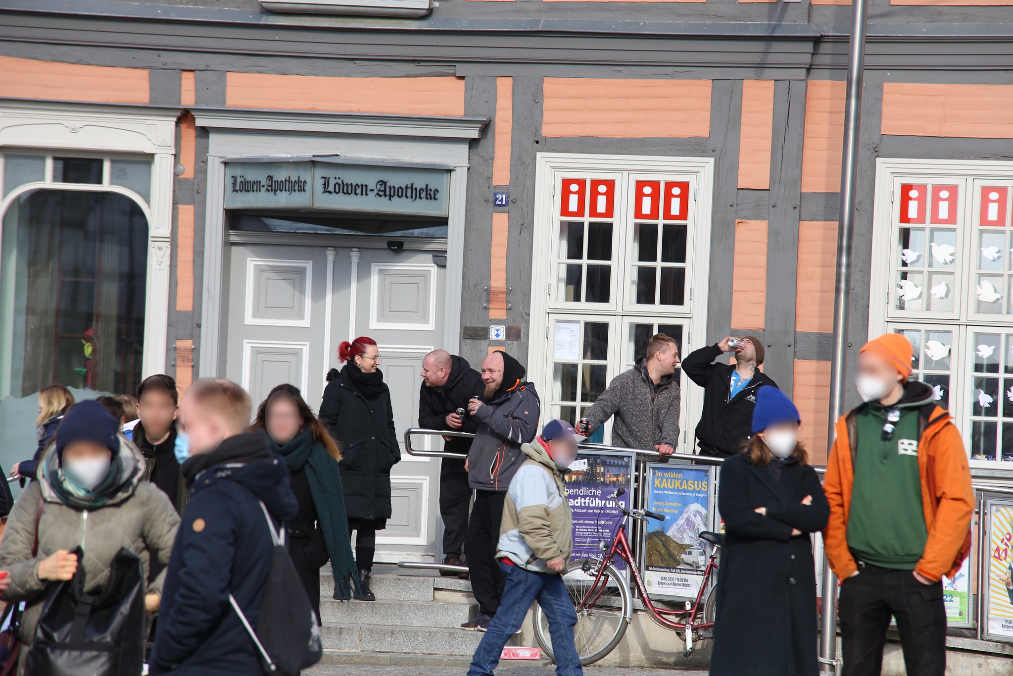 Am Tag der Veranstaltungen selbst lief es für sie allerdings nicht besser. Bereits um 11 Uhr versammelten sich mehr als 100 Demonstrant*innen, größtenteils aus der Zivilgesellschaft Warens, auf dem Markt um gegen die Neonazis zu protestieren.