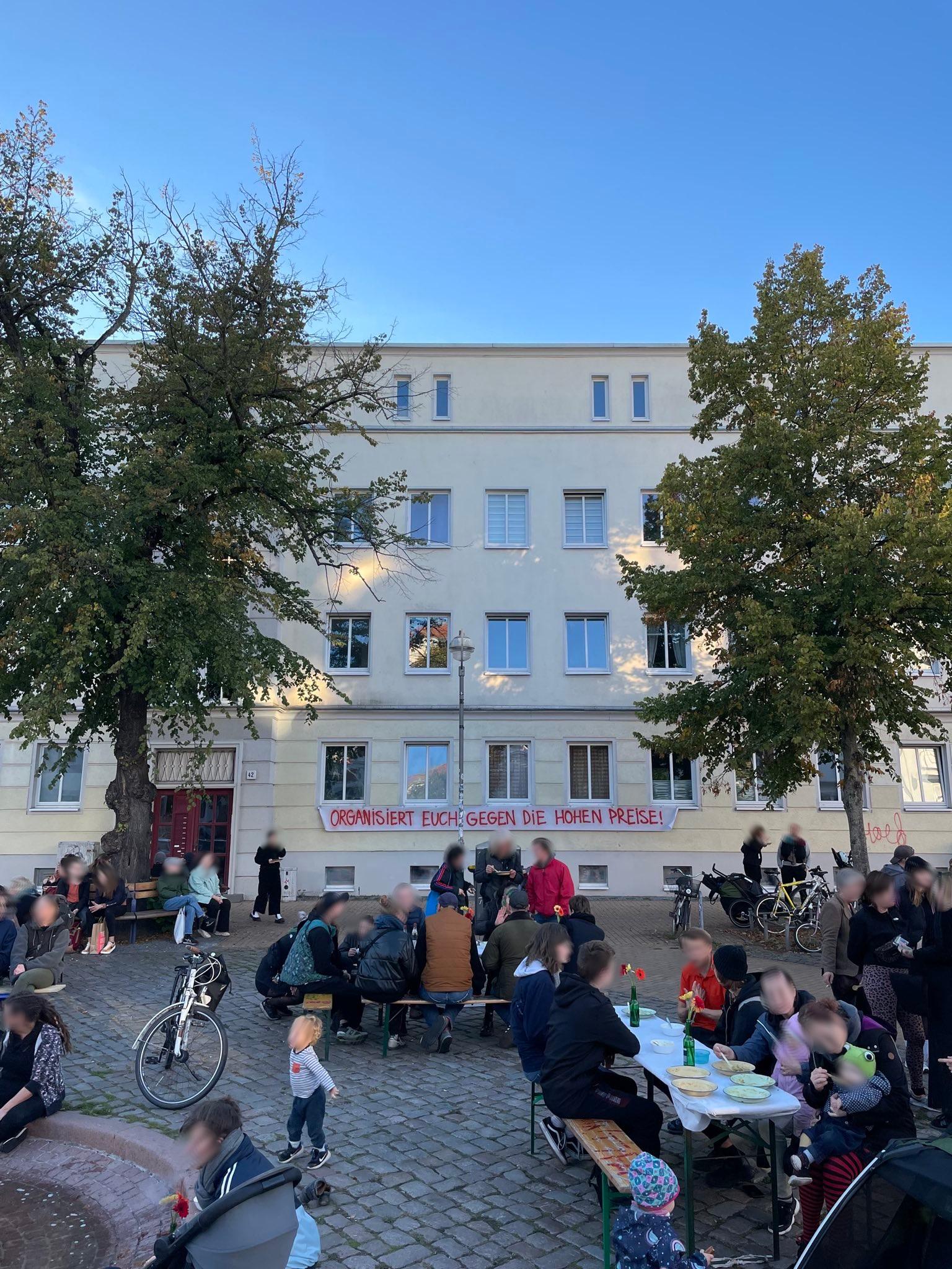 Heute konnten wir sehen, dass wir zumindest im Kleinen kollektive Antworten auf die Probleme unserer Zeit finden können. Dafür sind wir nicht auf den Staat angewiesen, der uns in diesem Herbst mit Geldgeschenken von der Ungerechtigkeit des Kapitalismus ablenken will. Wir hoffen, darauf in den nächsten Wochen aufbauen zu können und weiter gemeinsam Handlungsmöglichkeiten zu entwickeln.
