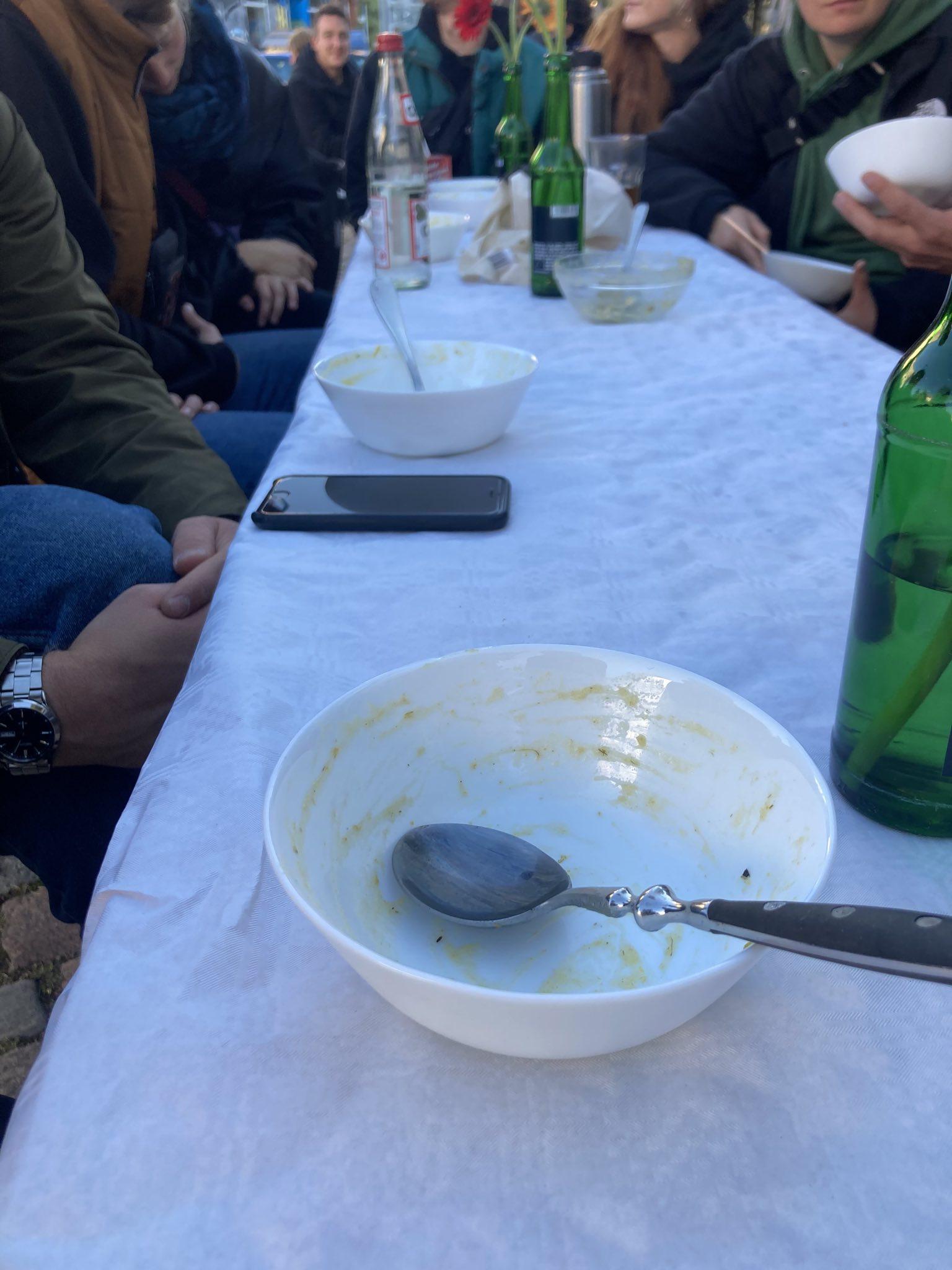 [Original erschienen unter https://de.indymedia.org/node/226048 ] Am Mittwoch fand auf dem Margaretenplatz in Rostock eine öffentliche Küfa statt. Bei bestem Wetter kamen etwa hundert Menschen zusammen, um gemeinsam zu essen. Mehrere Tische und Bänke machten den Platz zum Speisesaal und kostenlos oder gegen Spende wurde heiße Kartoffelsuppe mit Brot serviert.