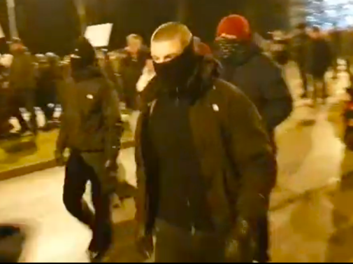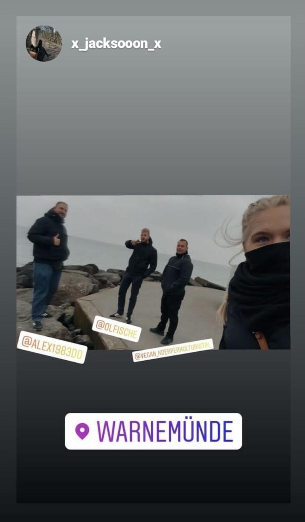 Seit Beginn der Corona-Demonstrationen in Rostock konnte eine kontinuierliche Teilnahme einiger Aktionsblogmitglieder festgestellt werden. Vor allem Marcel Prätorius 1 und Guido Howald traten regelmäßig in Erscheinung. Dort war besonders zu beobachten, wie (ehemalige) Aktionsblogmitglieder bestens vernetzt mit Neonazis aus dem Hooliganmilieu der „Nordischen Wut“ zusammen aktionsorientiert auftraten – auch bundesweit. Bei den Rostocker Corona-Demonstrationen im Januar 2022 griffen Aktionsblogkader wie Marcel Prätorius, Guido Howald und Personen aus ihrem Umfeld (Jan-Simon Heinelt) gemeinsam mit rechtsoffenen Hooligans Polizeiketten an. [Abb.6: Jan-Simon Heinelt] Oliver Fischer filmte zusammen mit einem bisher unbekannten (ehemaligen) Aktionsblogmitglied (Instagram: „x_jacksoon_x“) mehrere Montage in Folge die Demonstrationen in Rostock. [Abb. 7]
