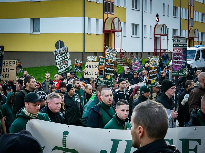 Am 02.10.2022 nahm David Mallow an einer III. Weg-Demonstration in Plauen teil [Abb. 9]. Er trug dabei die grüne uniformähnliche Jacke des III. Weges. Eine ebenso interessante wie vorhersehbare Entwicklung.