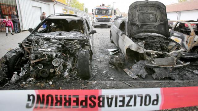 Am Rande einer Demonstration gegen die deutsche Flüchtlingspolitik in Stralsund (Kreis Vorpommern-Rügen)sind zehn Autos in Brand geraten. Dabei sei ein Schaden von mehreren 10 000 Euro entstanden, sagte ein Polizeisprecher am Samstag. Die Polizei geht von Brandstiftung aus und hat Ermittlungen aufgenommen.