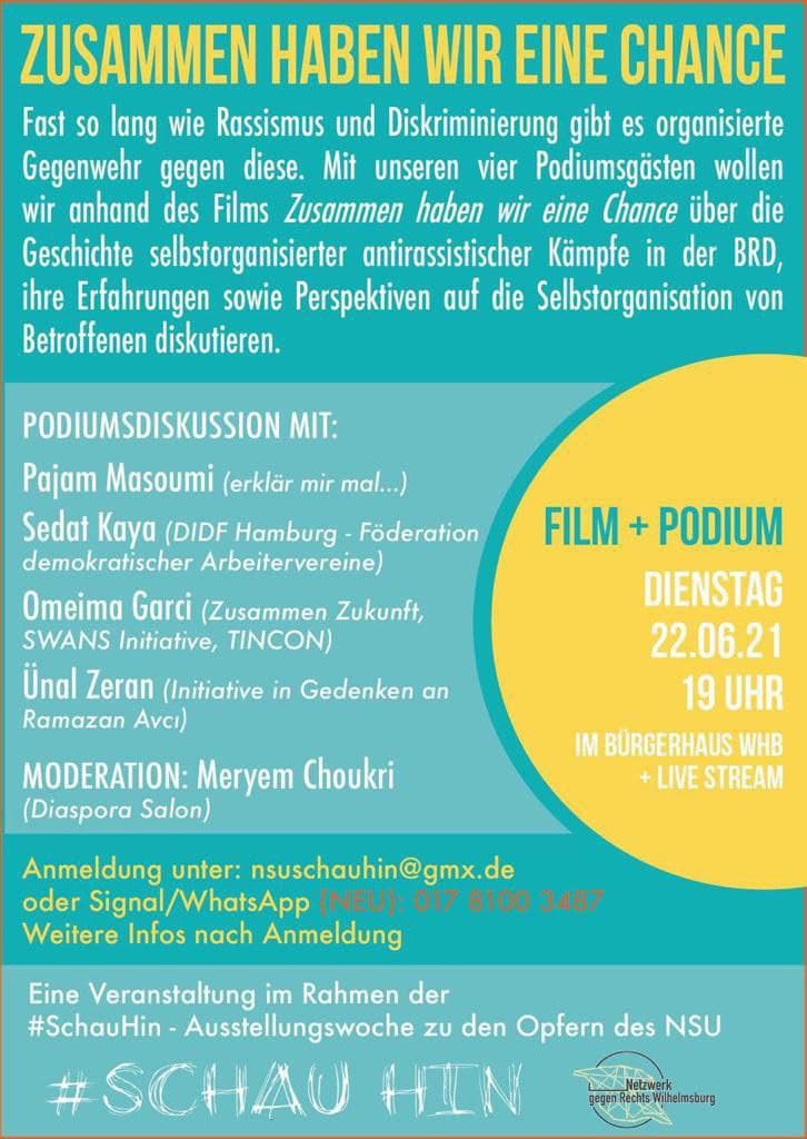 können. Anhand des Filmes „Zusammen haben wir eine Chance“ wollen wir mit unseren vier Podiumsgästen