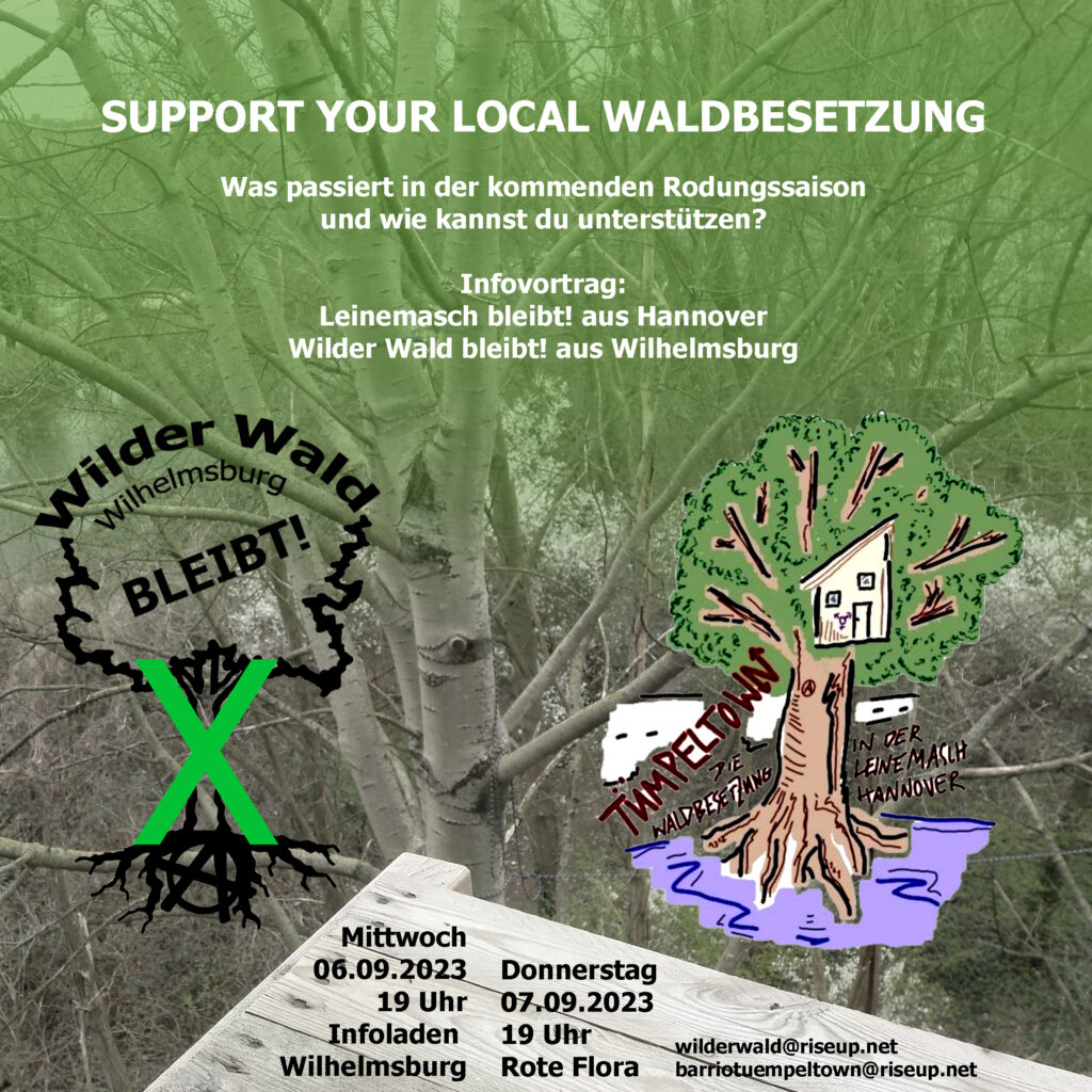 Wie jedes Jahr steht schon wieder die nächste Rodungssaison vor der Tür. Ab Oktober soll wieder hektarweise Natur für den kapitalistischen Wahnsinn zerstört werden. In der Leinemasch in Hannover soll der Südschnellweg verbreitert werden, anstatt die Verkeherswende umzusetzen. In Hamburg Wilhelmsburg soll der letzte Wald des Bezirks Mitte für Wohnungsbau gerodet werden, anstatt vorhanden Leerstand und Brachflächen zu nutzen.