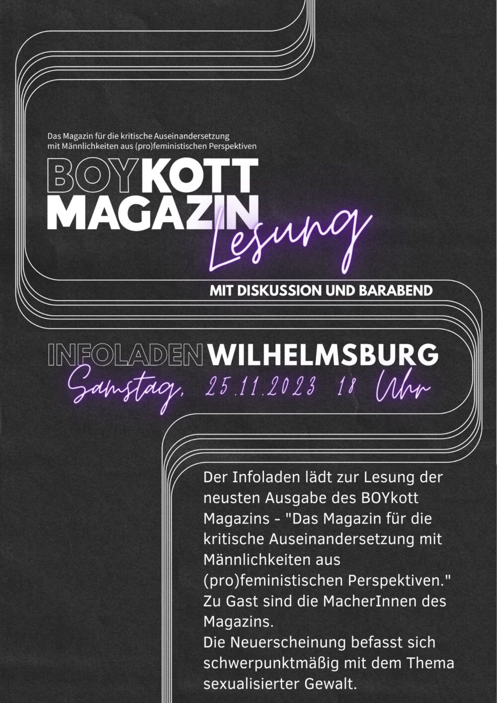 ABGESAGT! Sa. 25.11. 18 Uhr: Lesung BOYkott-Magazin + Kneipe