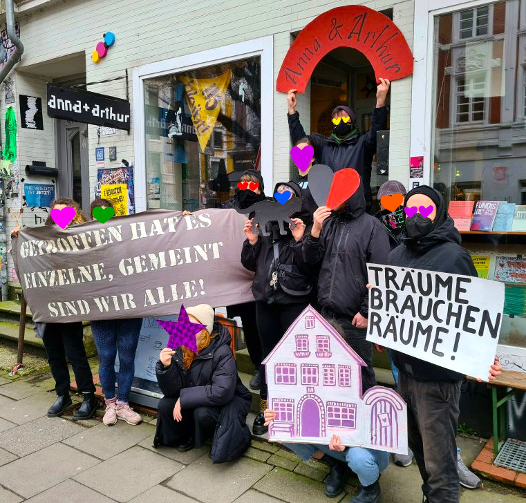 Zum 31.12. 2023 musste ein Haus aus unserer Vernetzung, das Anna & Arthur in Lüneburg, aufgrund einer Räumungsklage seine Räume verlassen. Alle Versuche des Anna & Arthur seine Räume zu erhalten waren erfolglos. Das macht uns wütend und fassungslos und lassen wir nicht unkommentiert- denn ein Angriff auf einen, ist ein Angriff auf uns alle.